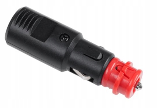 Штекер для автомобільного прикурювача зі знімним червоним наконечником, який дає змогу використовувати штекер для розеток EURO та DIN.