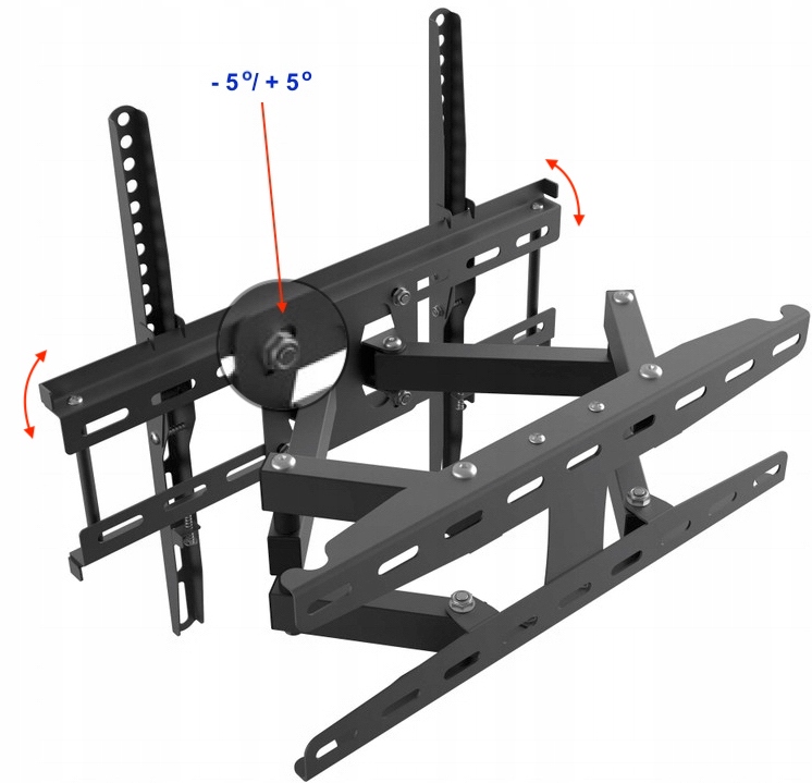 Пропонований тримач підходить для екранів (наприклад, телевізорів, моніторів) від 23” до 65” . Виготовлений зі сталі, тому відрізняється високою стійкістю і високим рівнем безпеки. Він має довгу ручку та суцільну настінну пластину. Його кут нахилу регулюється в діапазоні -15°, а поворот від +60° до -60°.