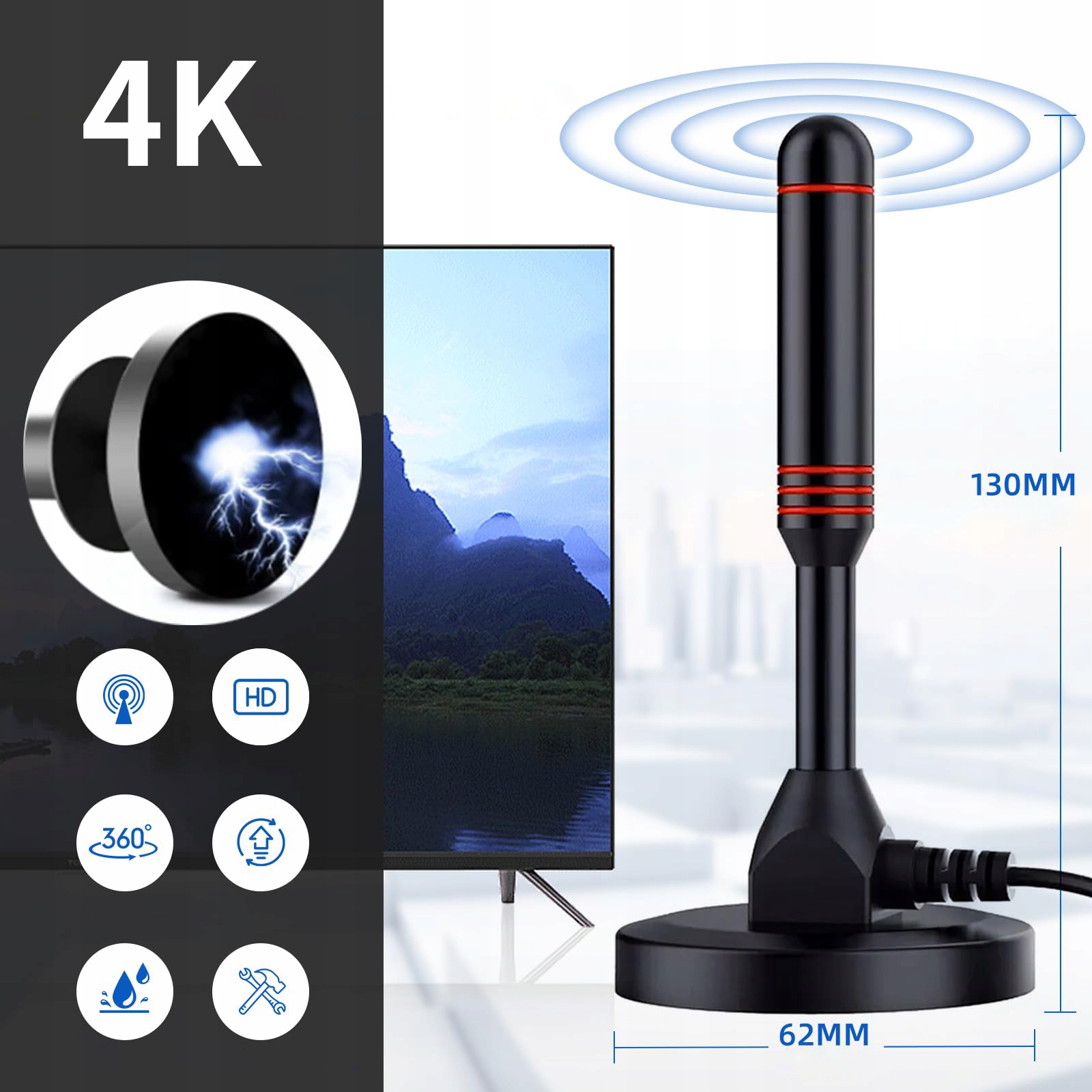 Портативна HDTV DVB-T DMB-T HD Antenna 360-градусна супутникова антена з антеною з антеною. Телевізійна підставка або на стіні - і все це без необхідності додаткового джерела живлення.
