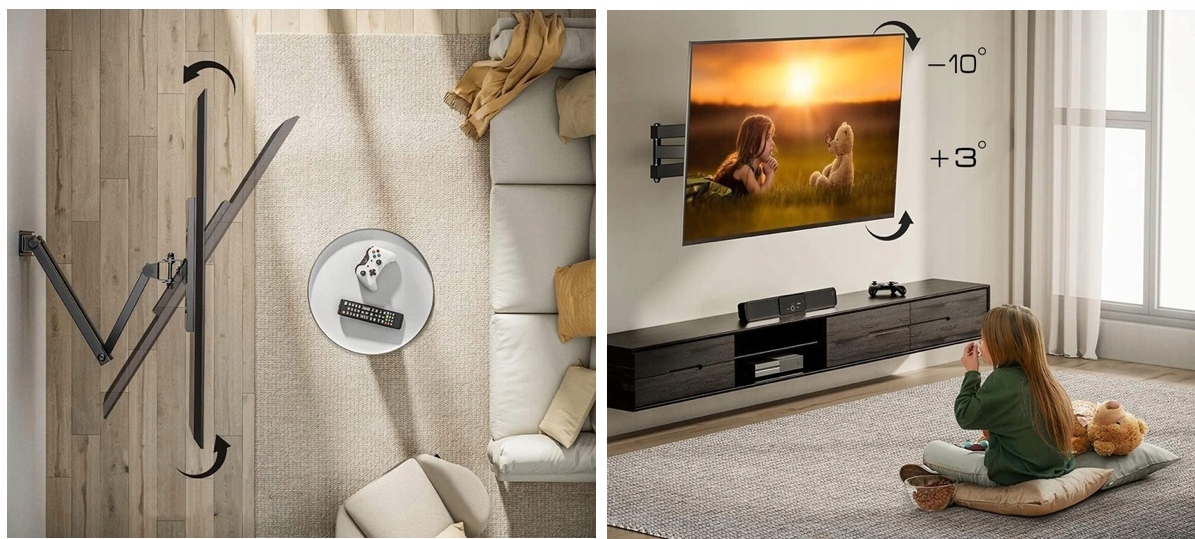 Наше універсальне кріплення для телевізора має регулювання нахилу в діапазоні від -3 до +10°. Великий діапазон регулювань дозволяє переглядати під найзручнішим кутом, не напружуючи очі та шию.