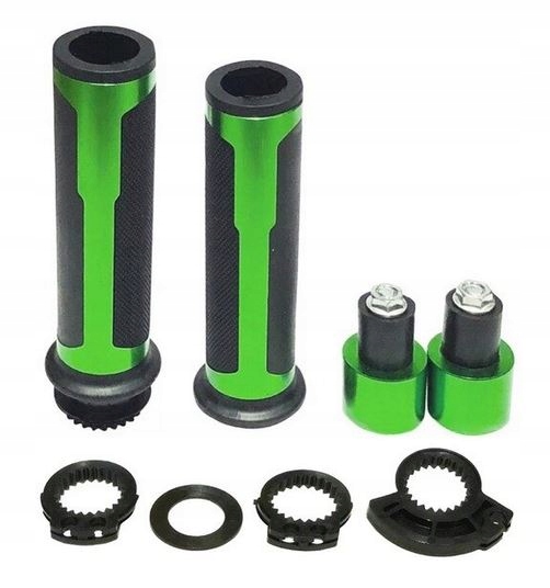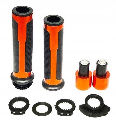 Мотоциклетні рукоятки виготовлені з високоякісного алюмінію, оснащені гумою в місці утримання рукоятки та обтяжувачами.