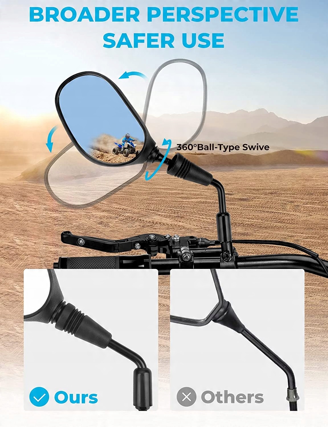 - Велике гумове покриття – наші мотоциклетні дзеркала з більшим гумовим захисним покриттям захищають від дощу, бруду та снігу, таким чином запобігаючи іржі та допомагаючи зменшити буфери.