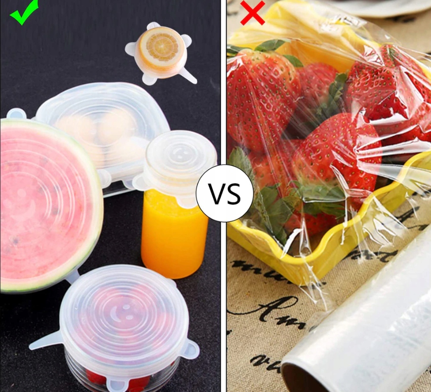 Силіконові харчові кришки замінять звичайну алюмінієву фольгу, запобігаючи висиханню та псуванню їжі. Завдяки своїй гнучкості вони ідеально вписуються в контейнери різного розміру, виготовлені з будь-якого матеріалу (пластик, кераміка, сталь, порцеляна тощо)