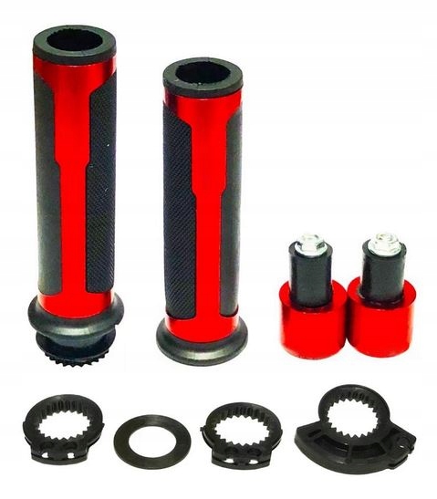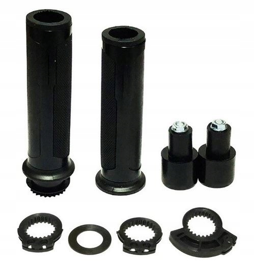 Мотоциклетні рукоятки виготовлені з високоякісного алюмінію, оснащені гумою в місці утримання рукоятки та обтяжувачами.