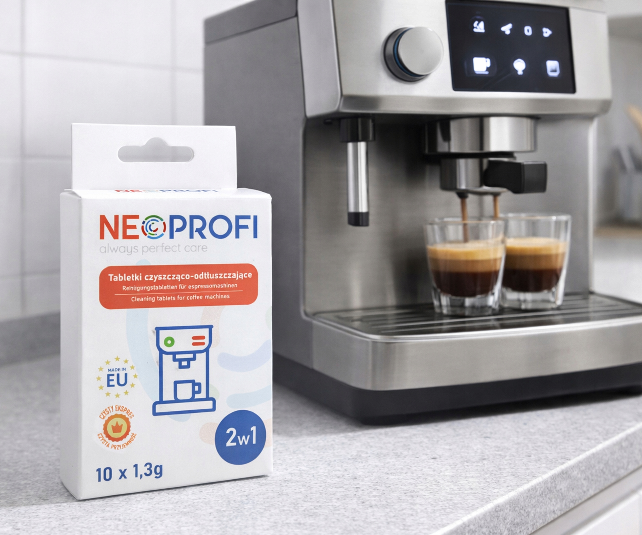 Регулярне використання очисних таблеток NeoProfi дає оптимальні результати. Вони підвищують ефективність і продовжують термін служби кавомашини. Вони захищають пристрій від перегріву та дорогого ремонту. Таблетки завжди забезпечують найкращий смак приготованих напоїв.