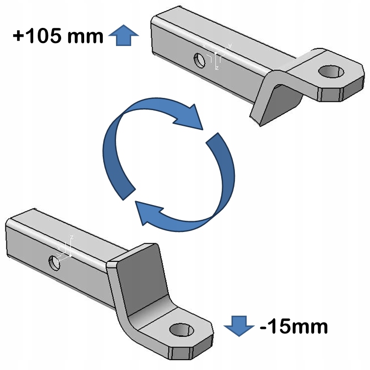 Завдяки можливості встановлення адаптера в двох положеннях - стандартному або перевернутому, користувач може регулювати висоту кулі буксирування відповідно до індивідуальних потреб і специфіки автомобіля. Така гнучкість установки дозволяє отримати правильну висоту кулі фаркопа відповідно до вимог правил щодо висоти кулівід землі (350 мм - 420 мм) Важливо, що схвалення адаптера враховує обидва положення кріплення, тому, незалежно від способу встановлення, продукт відповідає всім європейським стандартам безпеки.