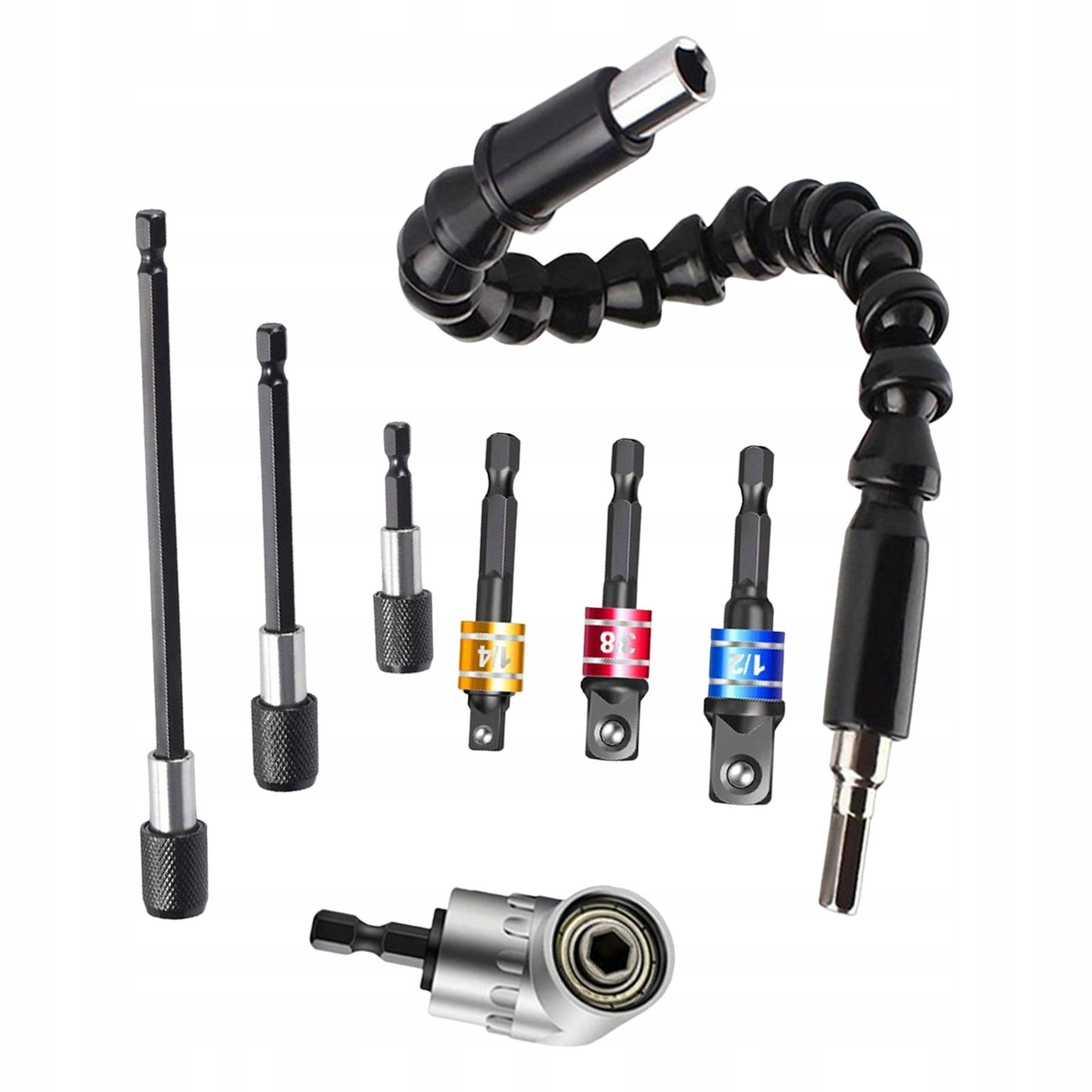 Упаковка 8 штук: 1x короткий адаптер свердла під прямим кутом, 3x чорний рукав для електрофорезу, 3x чорні рукави