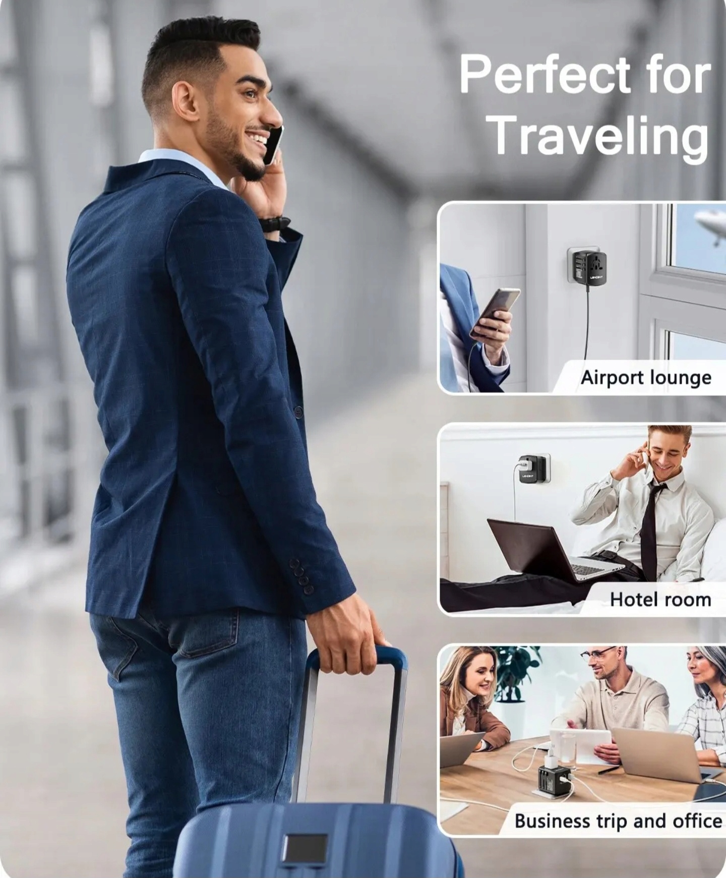 Дорожній адаптер LENCENT із 4 USB-портами забезпечує інтелектуальну ідентифікацію підключених пристроїв, а також виявлення та доставку оптимального заряджання струму, що забезпечує швидку та безпечну зарядку. Сумісний із більшістю електричних розеток у всьому світі.