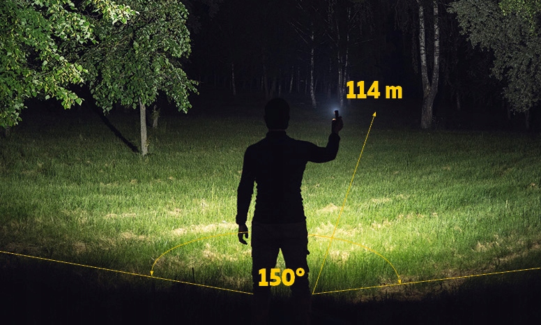 - Multifunctional model with brightness up to 4000 lm and a range of 114 m