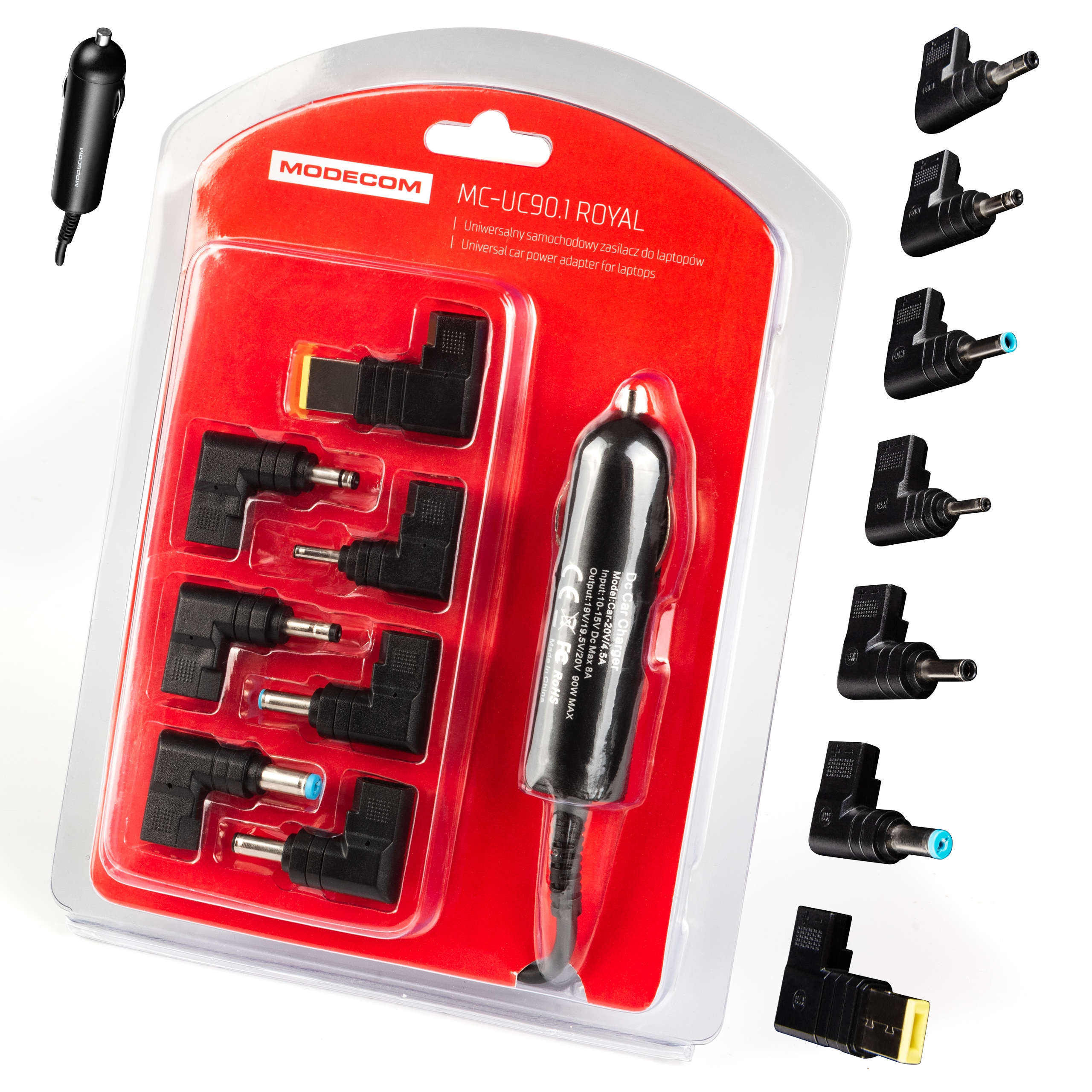 -це ефективне джерело живлення, що дозволяє швидко та ефективно заряджати ноутбук. Невеликий розмір, унікальні роз'єми штекера, які дозволяють ноутбукам заряджати Marek Acer, Dell, HP, Lenovo, Samsung та ASUS - лише деякі особливості цього практичного зарядного пристрою. Він простий у використанні, оскільки використовує автоматичну технологію вибору напруги та поради з світлодіодним сигналом, що підключається до ноутбука. Універсальність пристрою перетворюється на високу практичність використання зарядного пристрою - просто підключіться до розетки в машині, виберіть правильну наконечник і через деякий час починайте заряджати ноутбук. Modecom MC-UC90.1 Royal є обов'язковим для всіх, хто працює на полі або часто подорожує на автомобілі. Завдяки цьому зарядному пристрою проблема відсутності електроенергії в ноутбуці перестає існувати.
