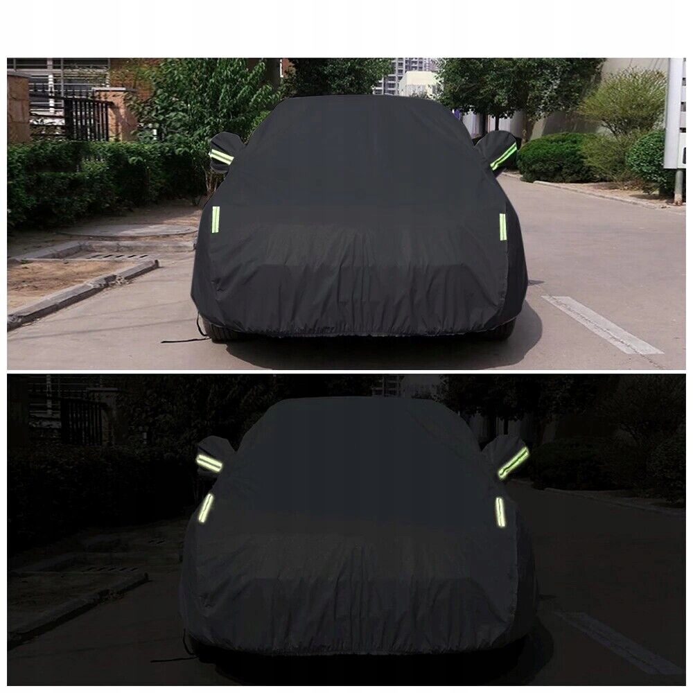 🚗【Чудовий матеріал】 Завдяки багатошаровому захисту тканини автомобільний чохол чудово захищає ваш автомобіль. Алюмінієвий шар чохла запобігає проникненню в автомобіль шкідливих ультрафіолетових променів сонця, а додаткова внутрішня частина з м'якої бавовни захищає фарбу від стирання. Покриття захищає від води. Він водонепроникний і зносостійкий.
