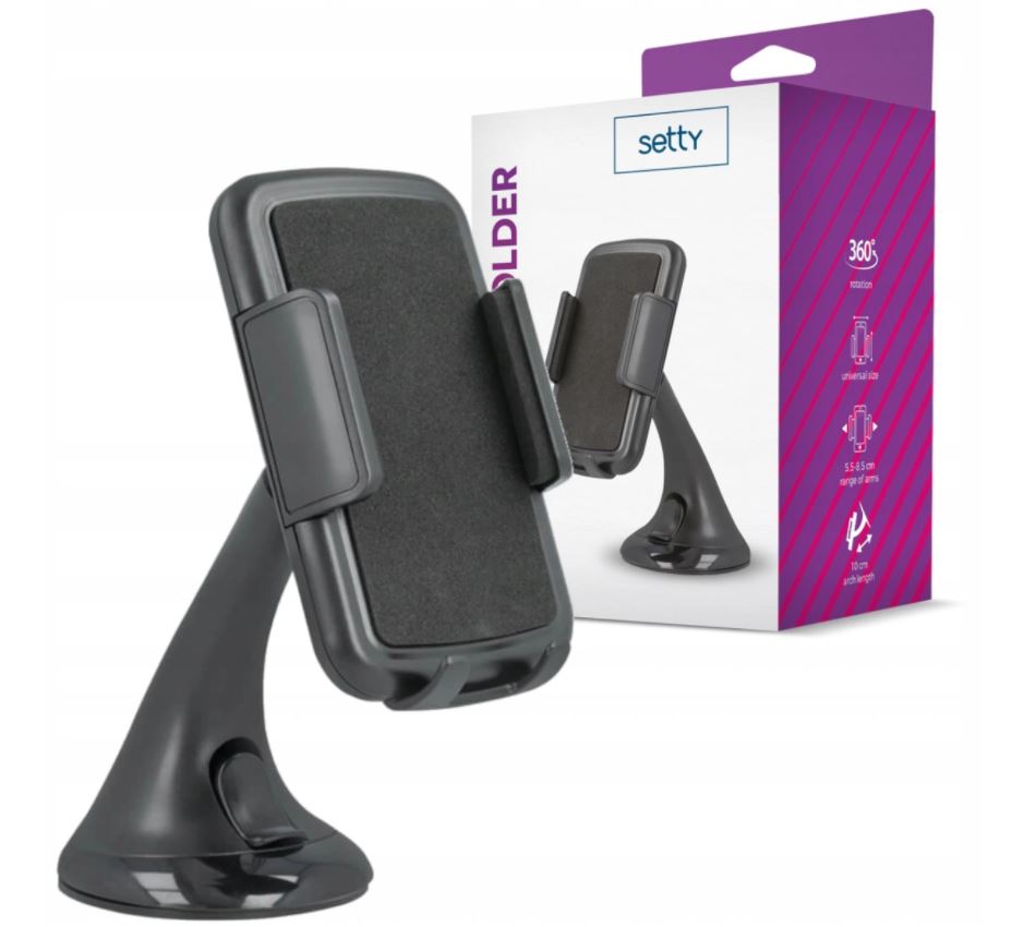 Міцний, простий у використанні та оснащений міцною присоскою, яка дозволяє стабільно прикріпити виріб до лобового скла. У набір входить тримач і кронштейн для кріплення з присоскою.