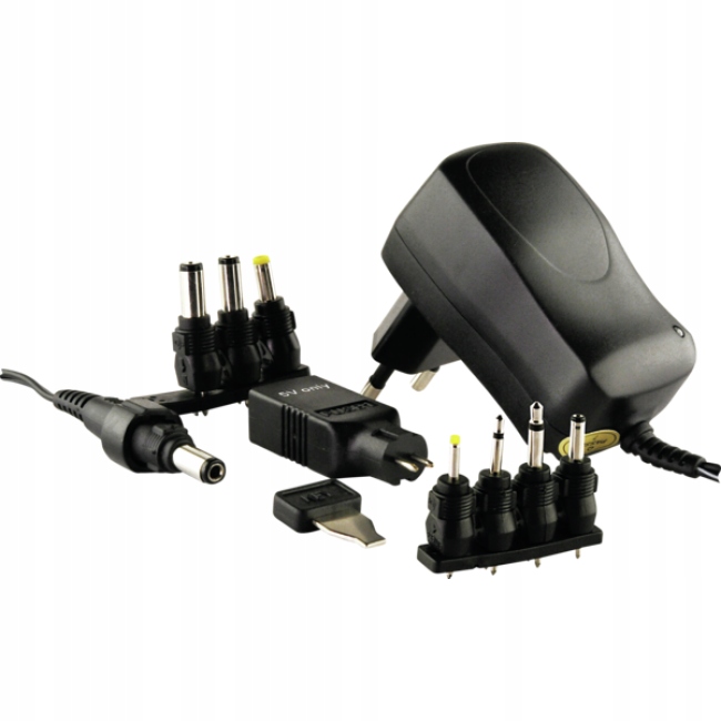 Блок живлення пропонує універсальне джерело живлення для портативних пристроїв. Світлодіод у верхній частині пристрою показує робочий стан, а поворотний перемикач на задній панелі дозволяє змінювати напругу в діапазоні від 3 В до 12 В. Вихідна напруга стабілізується, а завдяки вбудованому запобіжнику , пристрій автоматично вимикається у разі перегріву. Для індивідуального використання джерела живлення в комплекті з’єднувальний кабель довжиною 2 м із 9 різними роз’ємами.