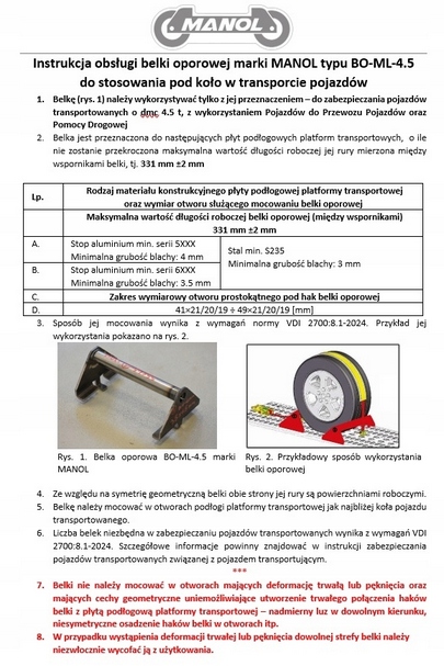 Частковий сертифікат VDI для певного виробу, щоб повністю відповідати вимогам стандарту VDi 2700-8.1: 2024 у автомобільному транспорті, ви повинні мати відповідні транспортні ремені, які відповідають стандарту, базу транспортного засобу та закріпити транспортний засіб належним чином відповідно до вказівок стандарту VDI 2700 Bi 8.1, наші колодки виконують свою роль протиоткатних упорів для коліс, використовуючи їх у будь-якому іншому обсягу або конфігурації виключно на ваш власний ризик. - оскільки вони можуть не виконувати свою роль з точки зору безпеки та вказівок стандарту VDI 2700-8.1: 2024. Термін дії сертифіката – 9 квітня 2028 р.