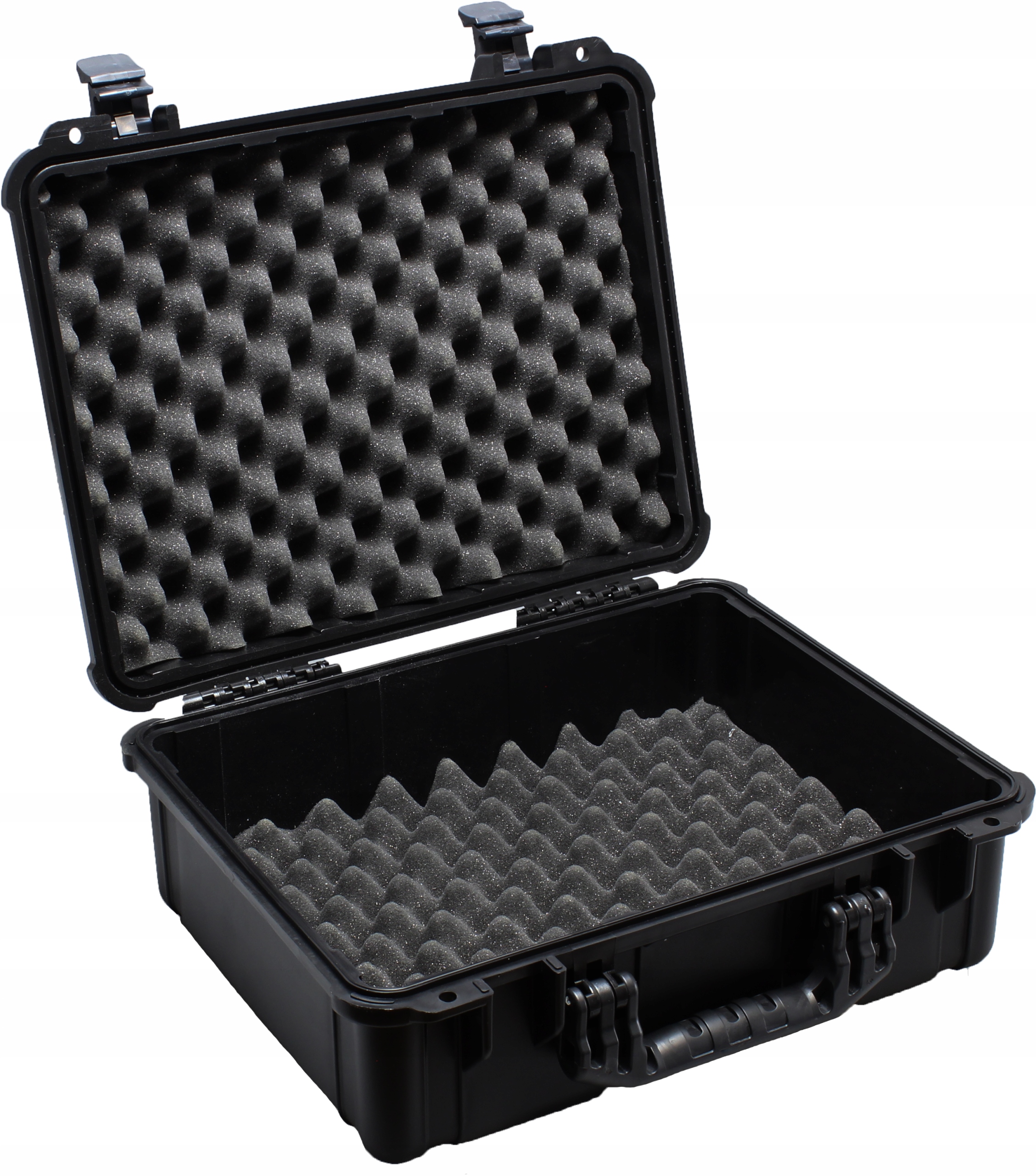Містка валіза на застібках, розміри 420x475x193 мм і вага приблизно 3 кг. У нього можна помістити різні види предметів, які потребують дбайливого транспортування. Також валізу можна використовувати для зберігання і транспортування інструментів і різних будівельних аксесуарів. Виготовлений з якісного, зносостійкого пластику і посилений додатковими ребрами жорсткості. Зручна профільована ручка для перенесення.