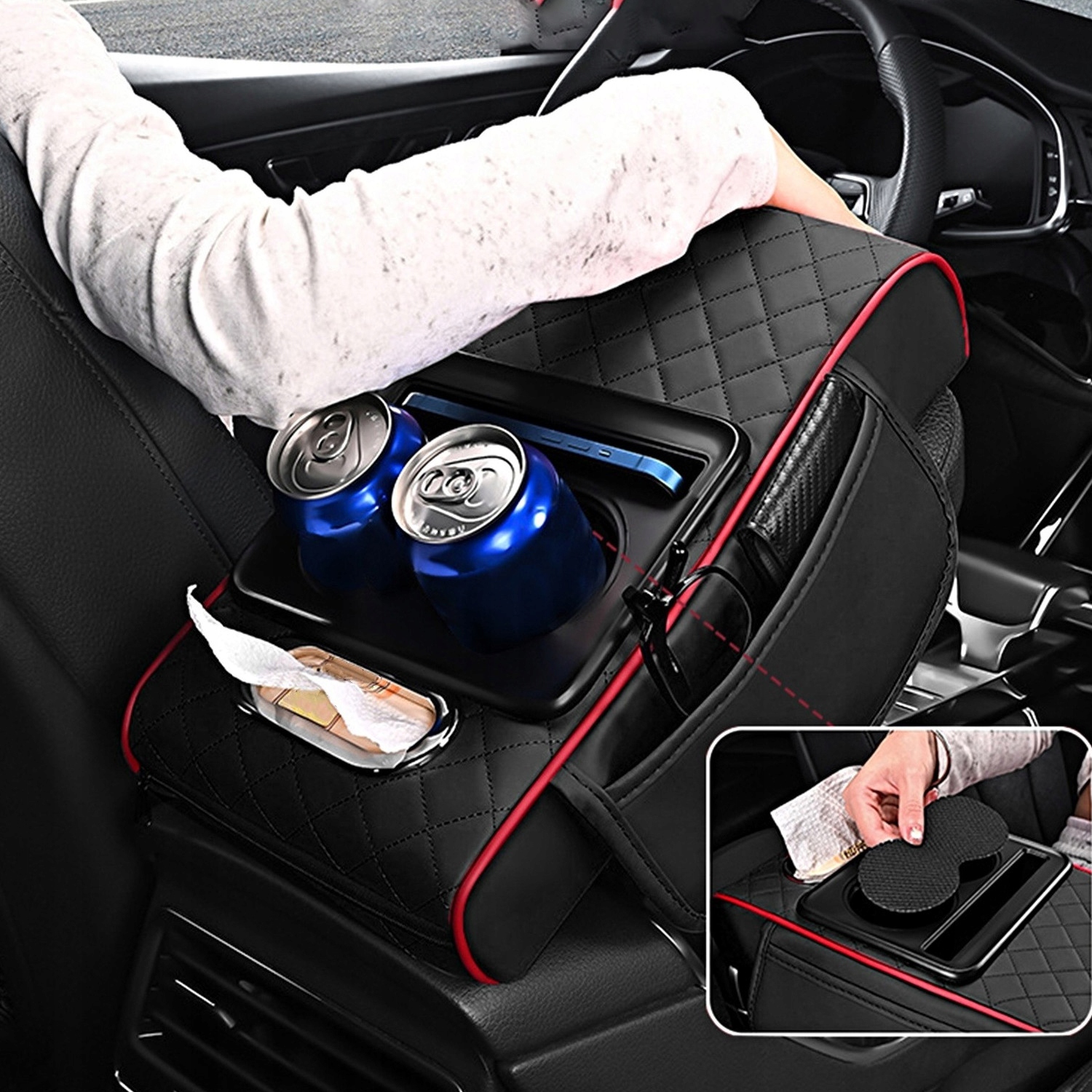 🚗Багатофункціональний дизайн: цей практичний підлокітник має вбудовану коробку для серветок, підстаканник, слот для мобільного телефону та бічні кишені для зберігання, що забезпечує легкий доступ до серветок, чашок, мобільних телефонів, карток, ключів, ручок та інших дрібних предметів.