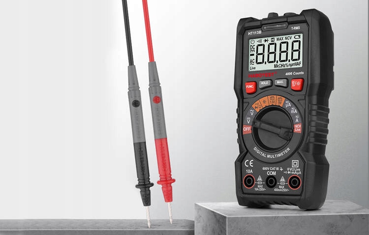Озбройтеся легким і зручним цифровим універсальним мультиметром Habotest HT113B, який дозволить вам зручно та безпечно вимірювати напругу, струм або опір. Habotest HT113B оснащений практичною підставкою, завдяки якій ви можете поставити продукт на полицю, іншими його перевагами є функція NCV, можливість перевірки діодів і ліхтарик. Корпус з м'якого матеріалу приємний на дотик, але також надзвичайно міцний, стійкий до зношування та падінь.