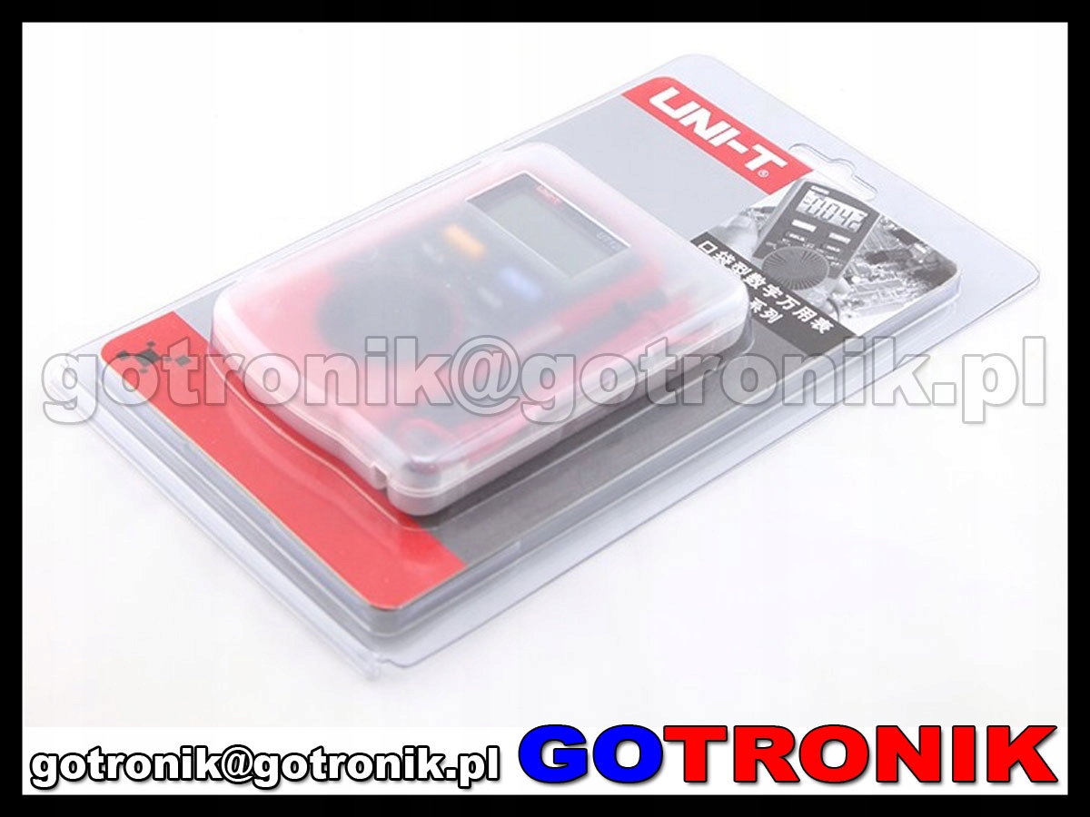 Кишеньковий лічильник UT120C. Упаковано в прозору міцну упаковку, яка дозволяє проводити серійні вимірювання без необхідності відкривати захисну упаковку. Використовуючи його, ми можемо виконувати всі стандартні вимірювання, такі як змінна та постійна напруга та струм, опір, ємність і частота. При цьому він невеликий за розміром і має дисплей з підсвічуванням.