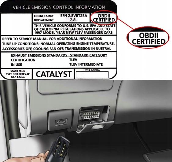 - повинен мати наклейку з інформацією про викиди вихлопних газів, яка найчастіше знаходиться в більшості автомобілів під капотом або біля радіатора. Ця наклейка містить інформацію про те, чи має транспортний засіб сертифікат OBDII.