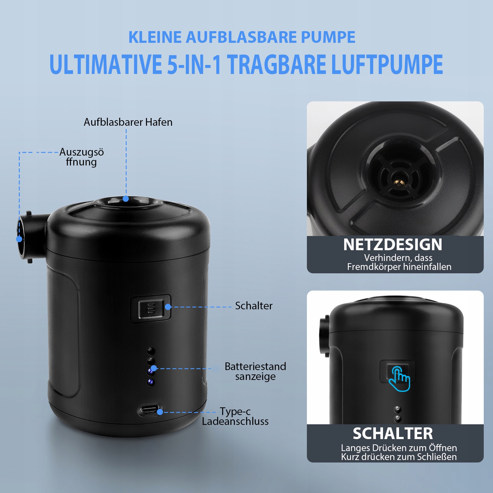 - 【Маленький бездротовий портативний повітряний насос】: На відміну від інших повітряних насосів, доступних на ринку, для яких потрібне джерело живлення, електричний повітряний насос може використовуватися не лише вдома, але і на пляжі, кемпінгу та заходах на свіжому повітрі. Пристрій має невеликий розмір і надзвичайно елегантний, його можна легко приховувати в рюкзаку, коли він не використовується, без збільшення ваги. Він ідеально підходить для кемпінгу, подорожі та для повсякденного використання. 4 Приєднаний USB -зарядний кабель можна використовувати з будь -яким пристроєм, оснащеним інтерфейсом USB, наприклад Автобудов, комп'ютер або банк живлення, що робить його більш зручним під час літніх подорожей. Ідеально підходить для всіх заходів на свіжому повітрі.