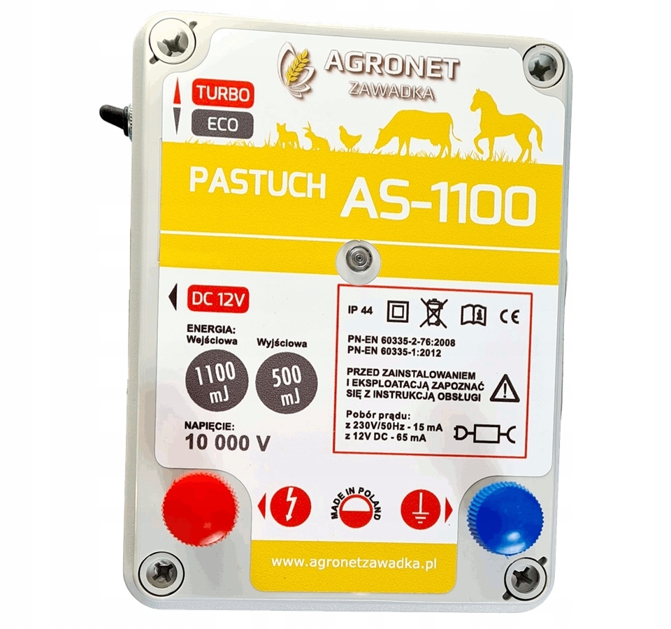eccopers мережа та акулятор AS-1100 призначені для електричних огорож, призначених для собак, птиці, великої рогатої худоби, коней, козлів. Електрична електрика герметично укладена в твердий корпус, який захищає від вологи, води та інших домішок. Він характеризується неприємностями, сучасним та легким дизайном та надзвичайно сприятливою ціною. Універсальний електричний електричний електричний джерело живлення 12 В (акумулятор), а також на 230 В за допомогою спеціального (джерела живлення). Перемикач електроенергії Еко/Турбо