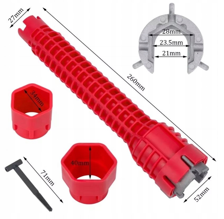 Багатофункціональний гайковий ключ для гідравлічних установок – це пристрій, який дозволяє легко отримати доступ до важкодоступних монтажних гайок, включаючи: на змішувачах, раковинах, розпилювачах і кульових кранах. Це забезпечує зручне встановлення та розбирання.