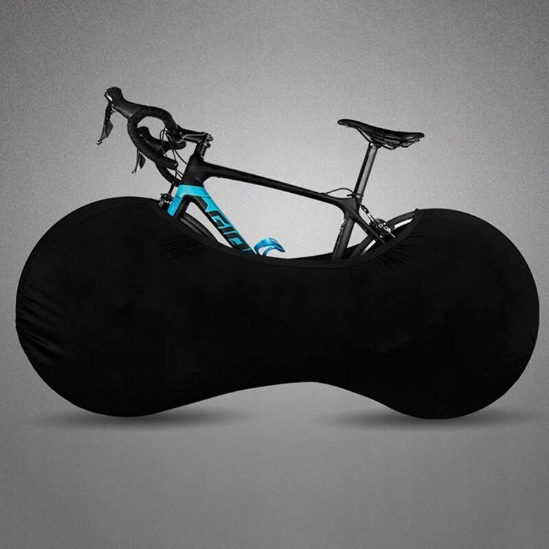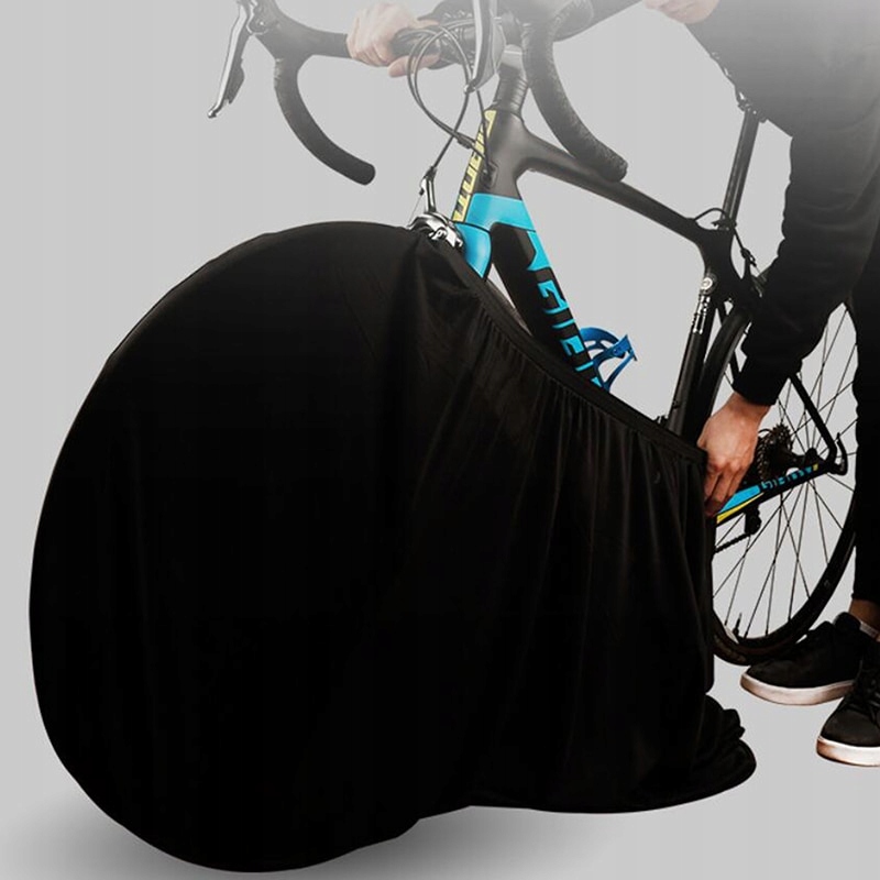 На передній і задній частині чохла є еластичні стрічки, завдяки яким він краще прилягає до коліс велосипеда.