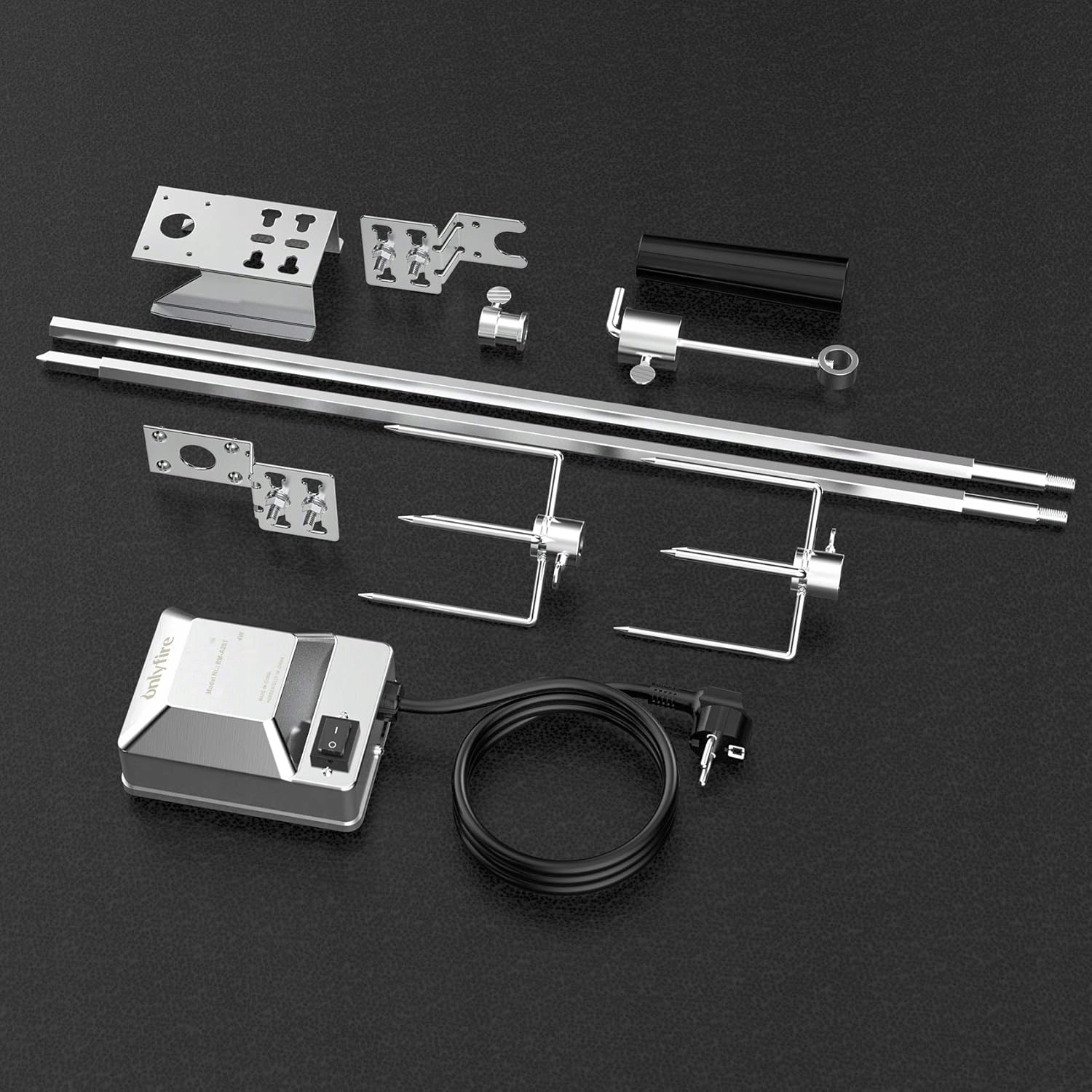 ✅ Включає сталевий стрижень для гриля діаметром 1/2 дюйма, комплект противаги, суцільні вилки, ручку для блювоти, набір ручок та електродвигун