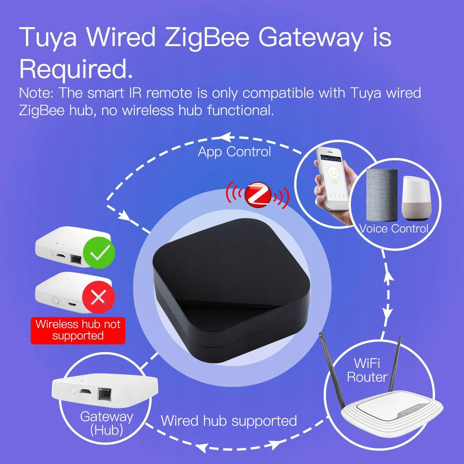 APP & Голосове керування: Ви можете керувати всіма інфрачервоними (ІЧ) пристроями на своїх телефонах за допомогою Tuya APP, наприклад телевізором, DVD, кондиціонером тощо. Він також підтримує голосове керування.