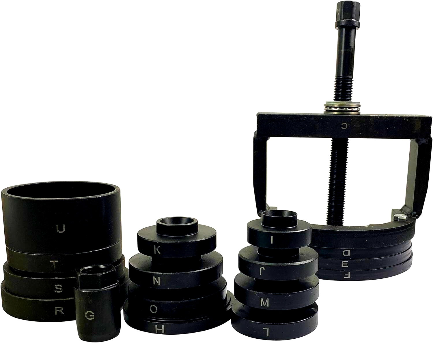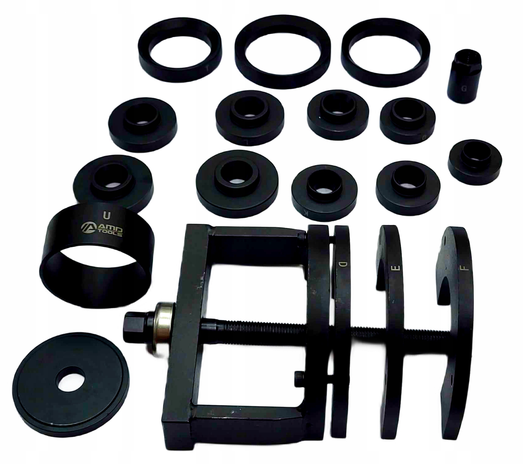 Інструмент використовується для монтажу та демонтажу маточини колеса та підшипників, він складається з 23 елементів - поміщений у міцну валізу.