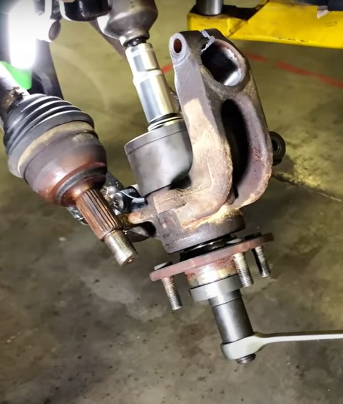 Не потрібно знімати амортизатор або поворотний кулак, щоб зняти/встановити втулку та підшипник.