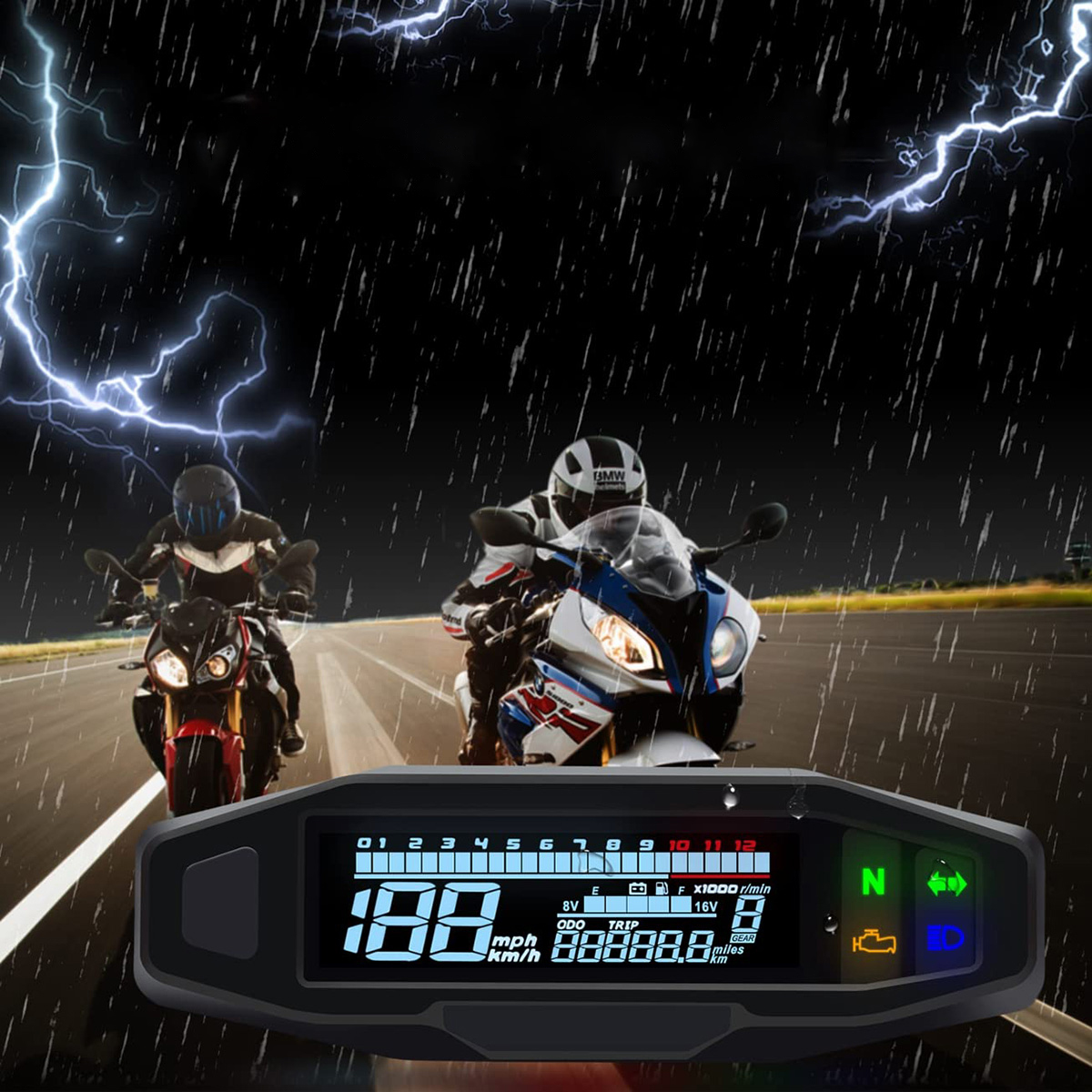 Функції включають: спідометр, тахометр та індикатор палива. РК -екран дуже чіткий, має широкий кут зору, а його м'який зовнішній вигляд заспокоює втому очей. Унікальний і гладкий, безпечний і запечатаний.