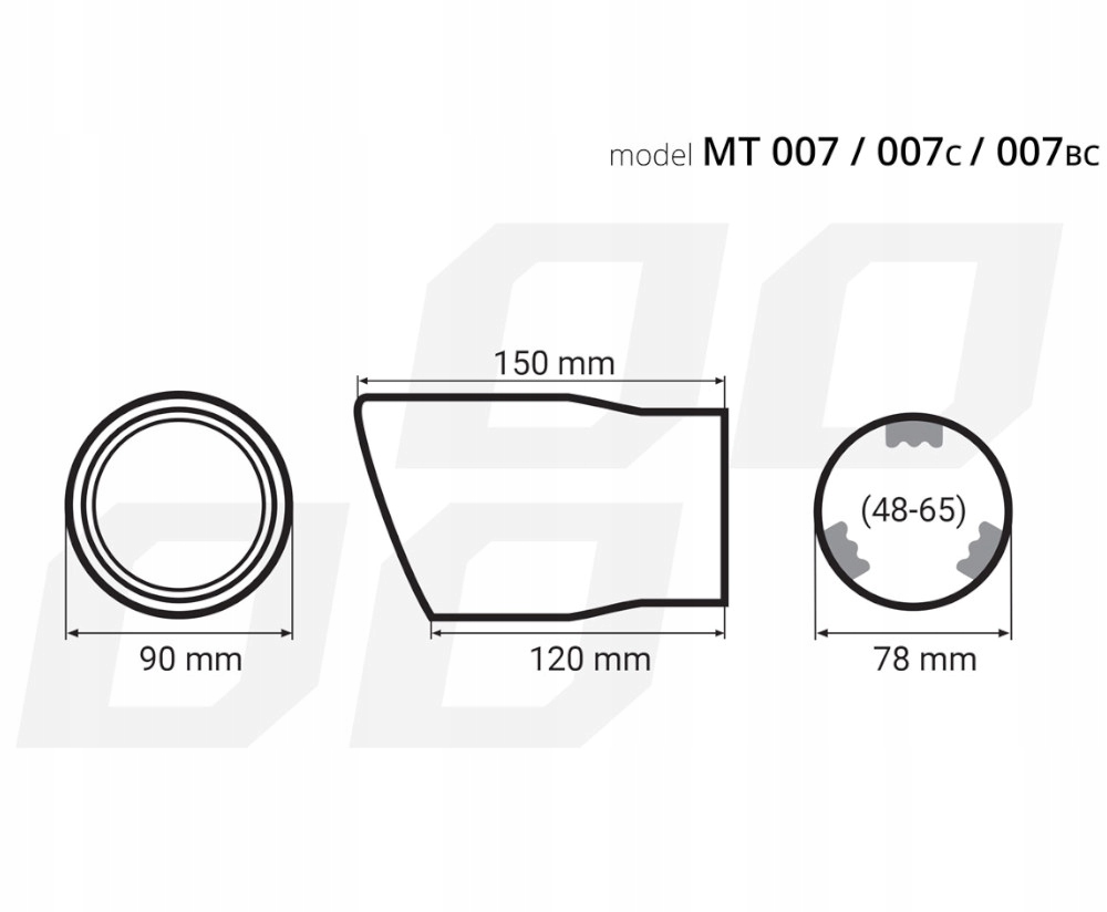 - діаметр кріплення: 48 - 65 мм (діаметр вихідної вихлопної труби, на якій наконечник може бути встановлений)