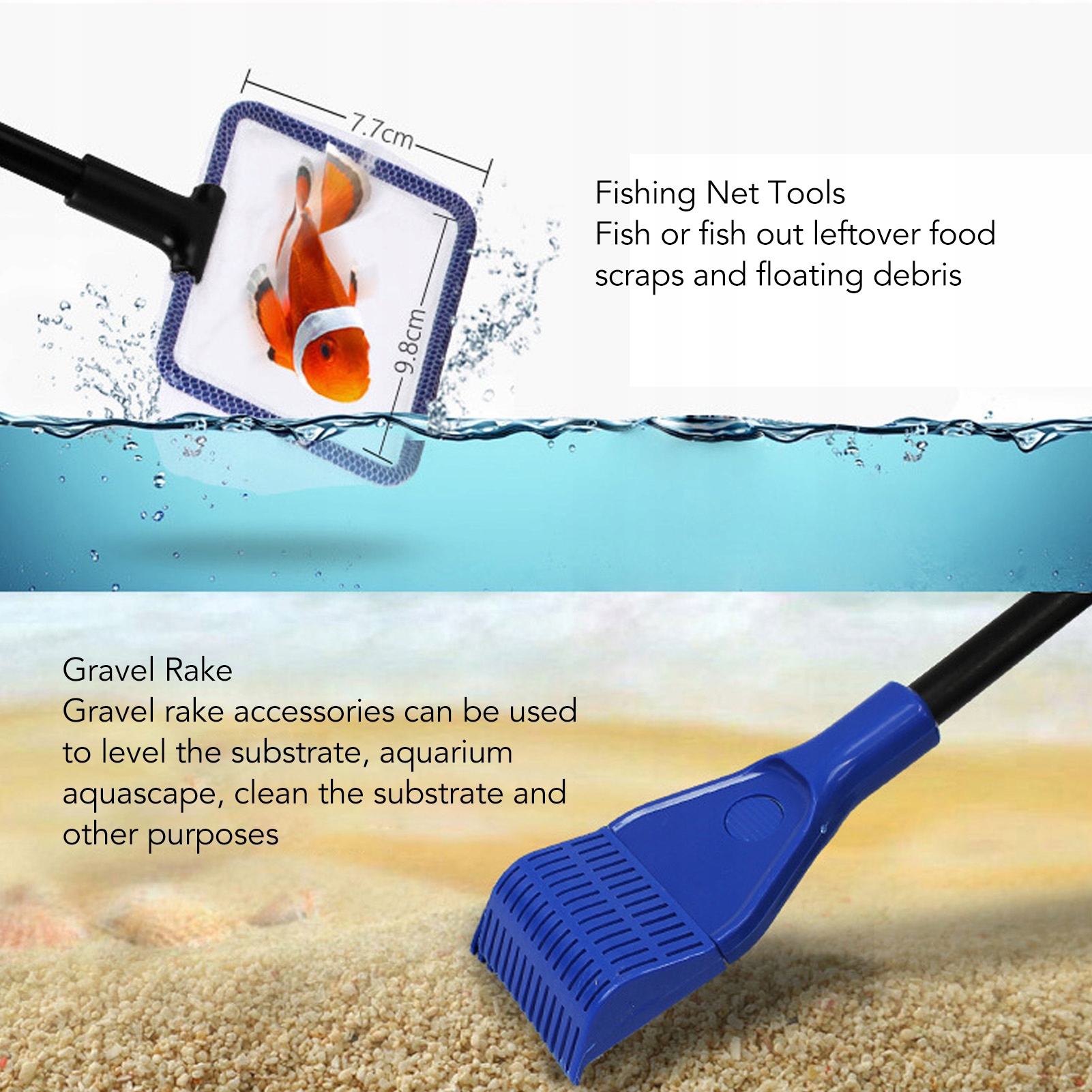 2. Багато інструментів для чищення: Цей набір включає гравійні граблі, скрепер водоростей, рослинні вилки, губчаста щітка та рибна сітка. Кожен інструмент був спеціально розроблений для ефективного очищення різних частин акваріума, завдяки якому технічне обслуговування є ATWA та ефективним.