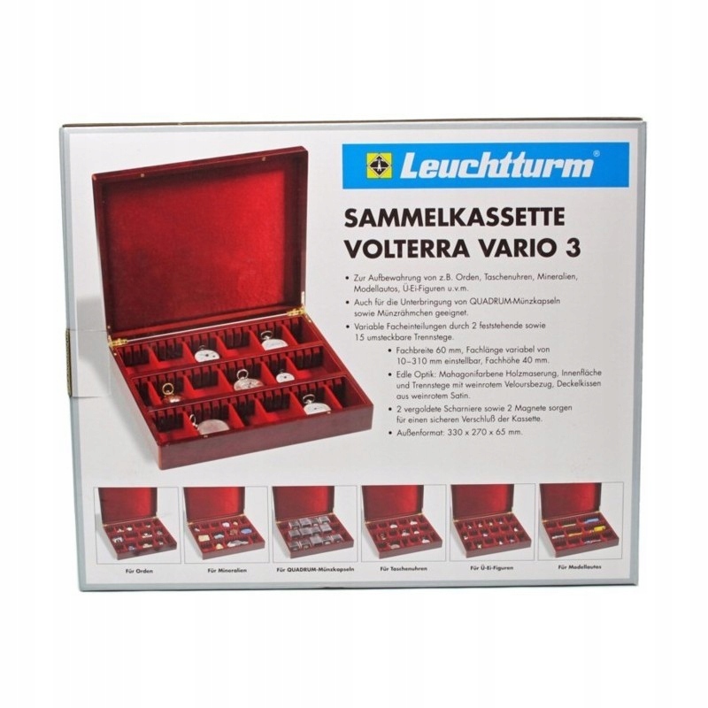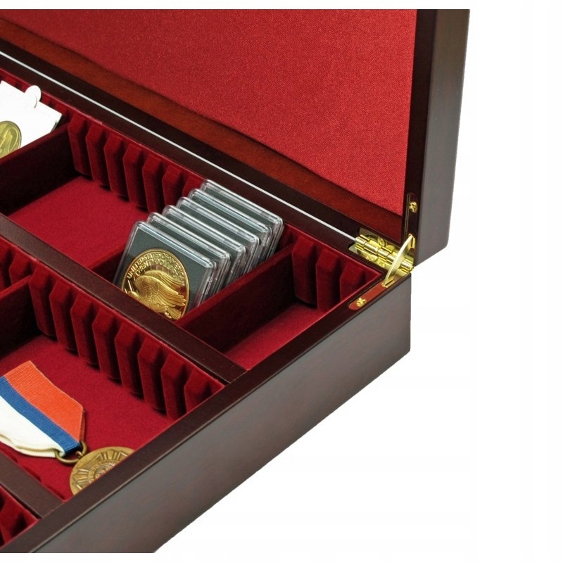 Касету можна використовувати для зберігання медалей, годинників, коштовностей, колекційних статуеток, монет в квадрумі. капсули та тримачі.