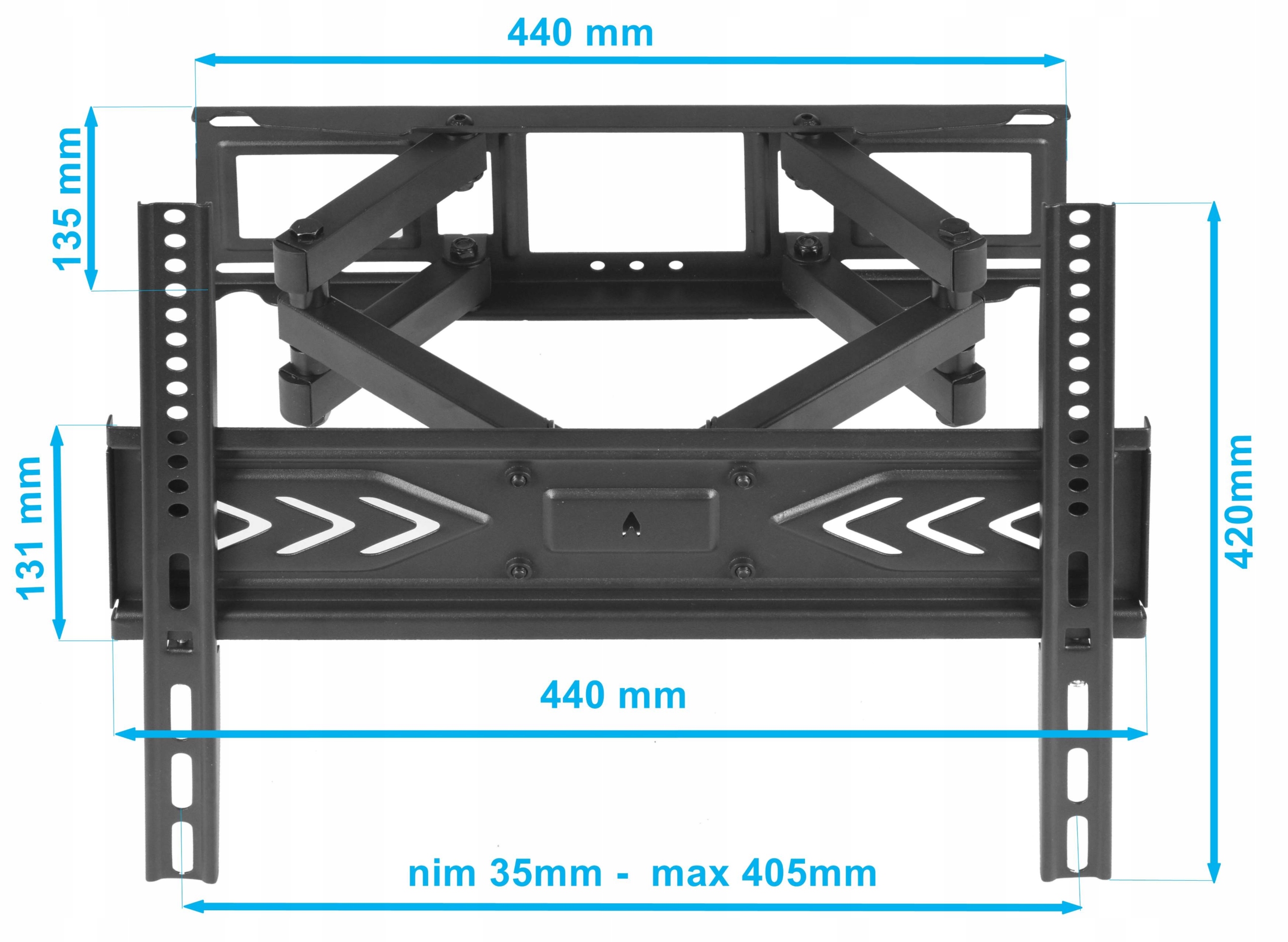 - ✅Тримач є УНІВЕРСАЛЬНИМ і підходить до всіх моделей телевізорів, які мають відстань між монтажними отворами VESA в діапазоні від: 100 x 100 до 400 x 400 мм і вагою до 40 кг