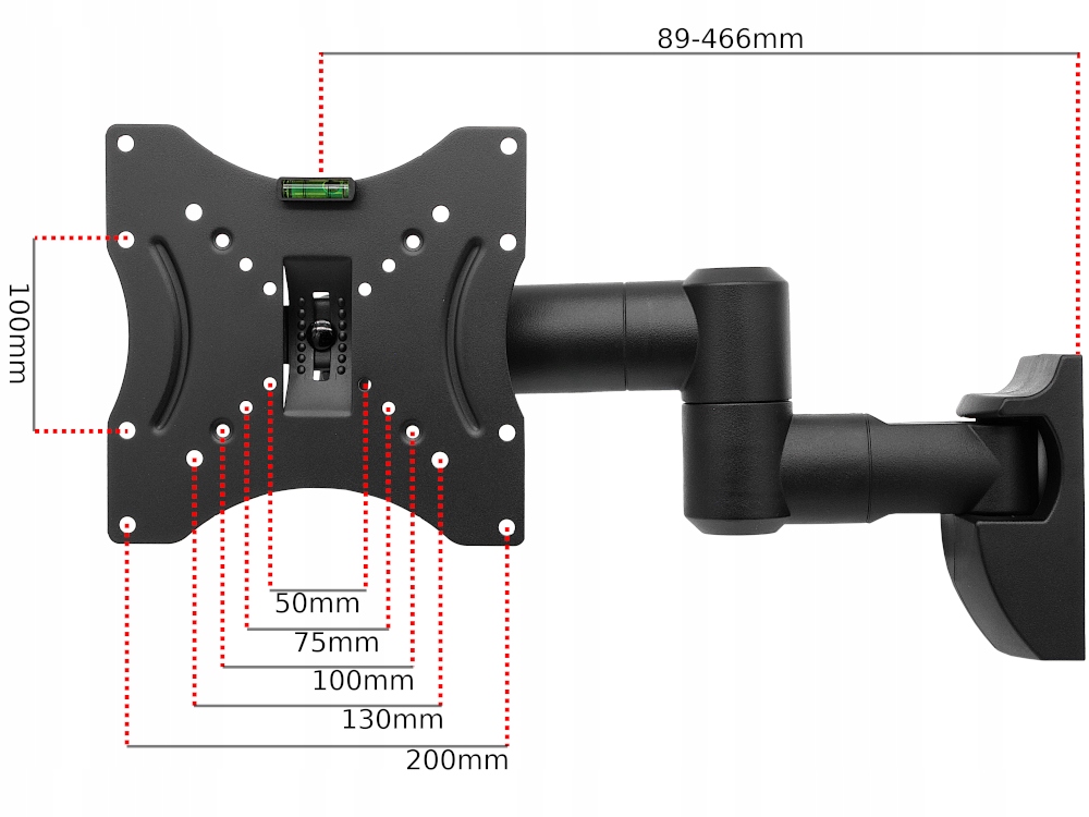 Завдяки добре- Продумана конструкція дозволяє встановити відстань монітора від стіни в діапазоні від 89 мм до 466 мм.