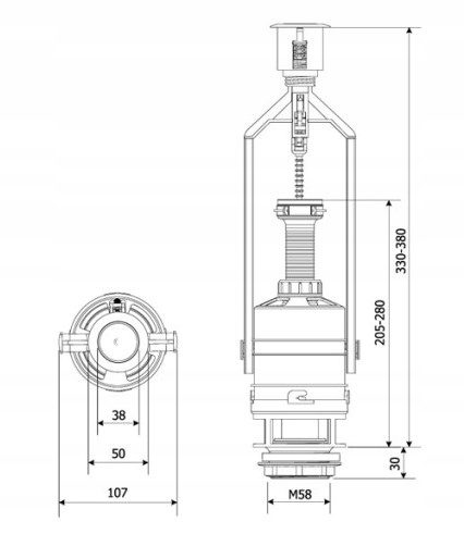 УНІВЕРСАЛЬНИЙ КРУГЛОВИЙ ЗЛИВНИЙ КЛАПАН ДЛЯ УНІТАЗУ