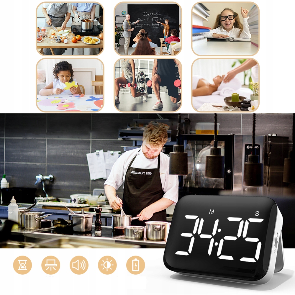 🧭【 Розмістіть таймер де завгодно】 Магнітний таймер має 2 сильні магніти ззаду, які можна міцно прикріпити до будь -якої металевої поверхні, наприклад, холодильник | Піч у духовці тощо. Її також можна повісити в будь -якому місці гачком. Набір також включає підставку, яка дозволяє поставити його на таблицю. Ідеально підходить для приготування їжі, домашніх завдань, для зустрічей, школи, офісів, бібліотек, а також для дітей, домогосподарок та вчителів.