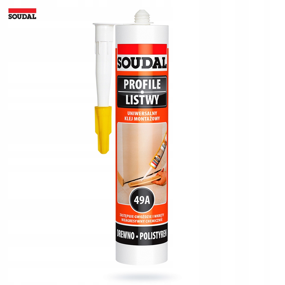 Універсальний швидковисихаючий монтажний клей для профілів і планок, заміна цвяхів і шурупів SOUDAL 49A