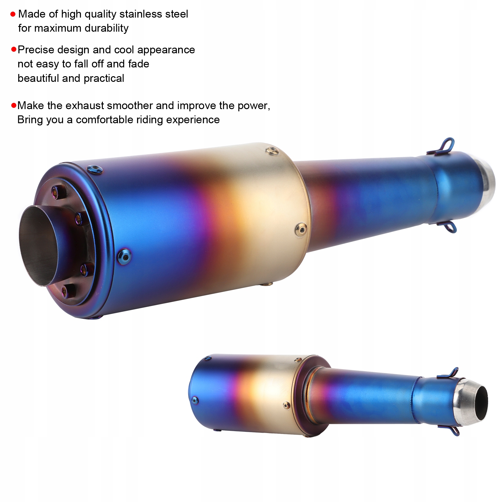 1, універсальний для мотоциклів з діаметром вихлопної труби 38-51 мм/1,5-2 дюйма, підходить для Kawasaki Z750 Z900 Z800, підходить для Benelli 752 тощо. 2, наконечник вихлопної труби з функція глушника, може збільшити потужність, забезпечити більш плавний вихлоп для кращого задоволення від водіння. 3. Ідеально встановіть вихлопну трубу вашого мотоцикла, красиво виготовлену, її нелегко впасти або вицвітати, вона може радикально покращити зовнішній вигляд вашого мотоцикла. 4, використовує високоякісний матеріал з нержавіючої сталі, міцну структуру, високу твердість, важко деформувати, міцний у використанні. 5, точне виготовлення, проста, міцна установка, надають мотоциклу спортивний характер.