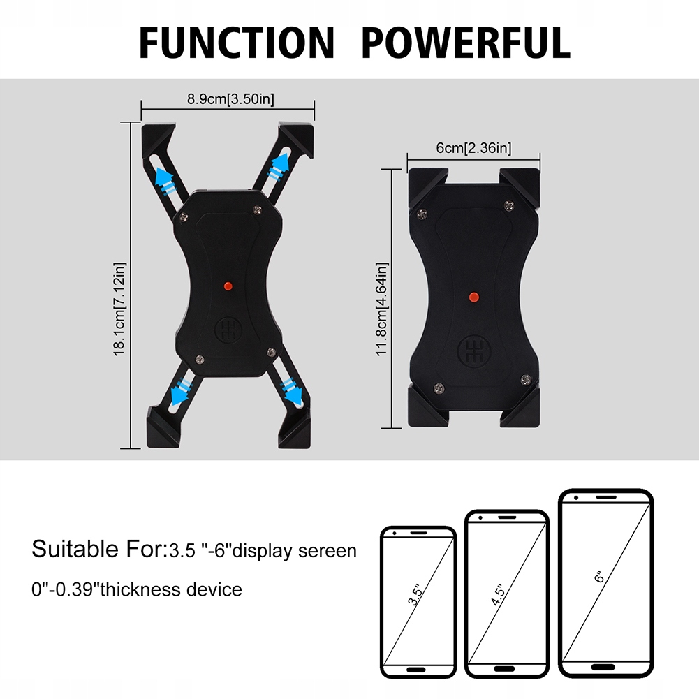 1, 360 градусів; Поворот, відсутність лінії зору. 2. Можна адаптувати до розміру телефону. 3. Прості в установці, ви можете повернути руки, установка не потребує жодного інструменту, відновлюючи одним клацанням. 4, підходить для обладнання 3,5-6 дюймів. 5. З портом зарядки USB та вхідним струмом 2A. Ви також можете заряджати мобільний телефон, виправляючи його на ручці.