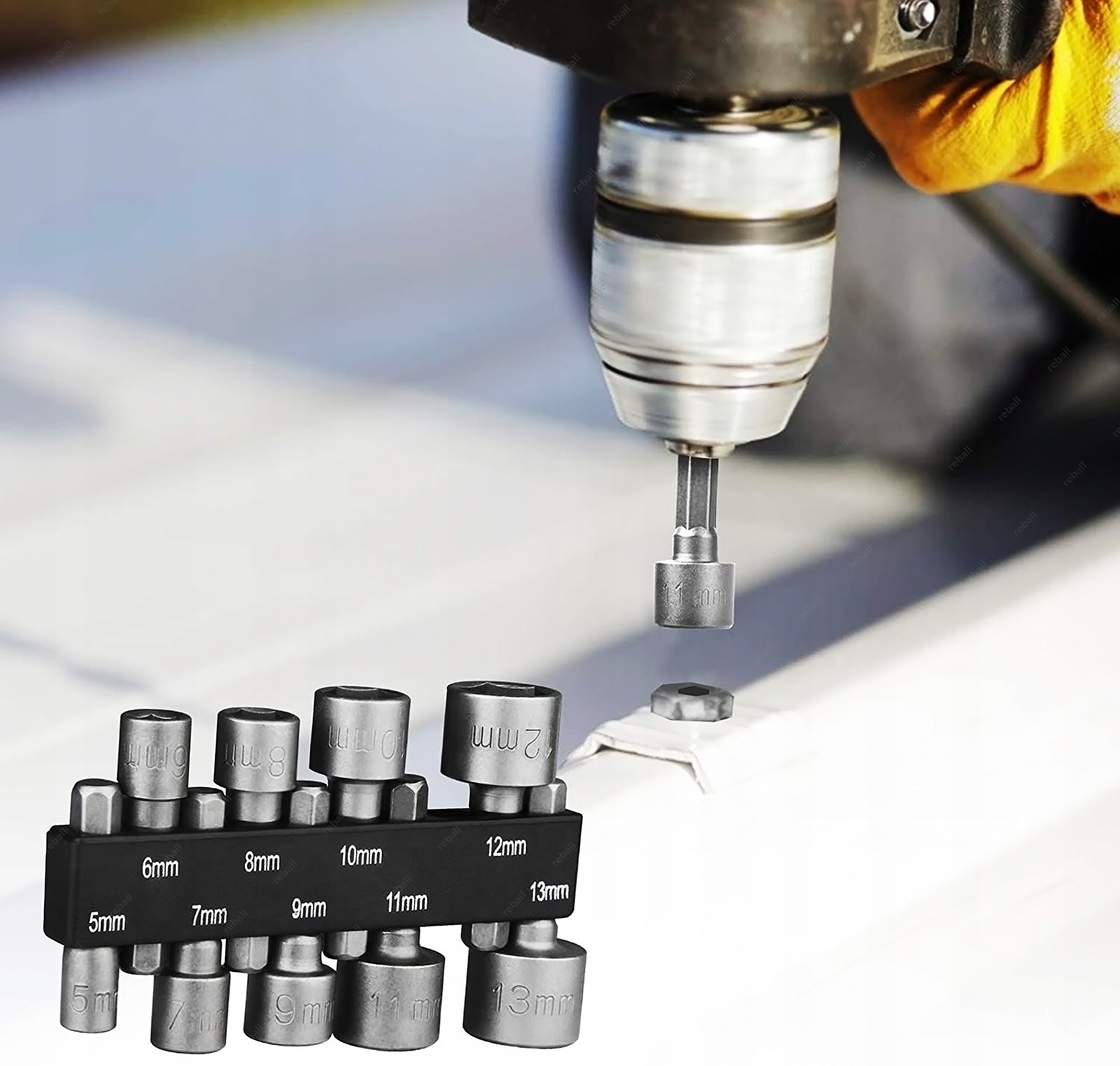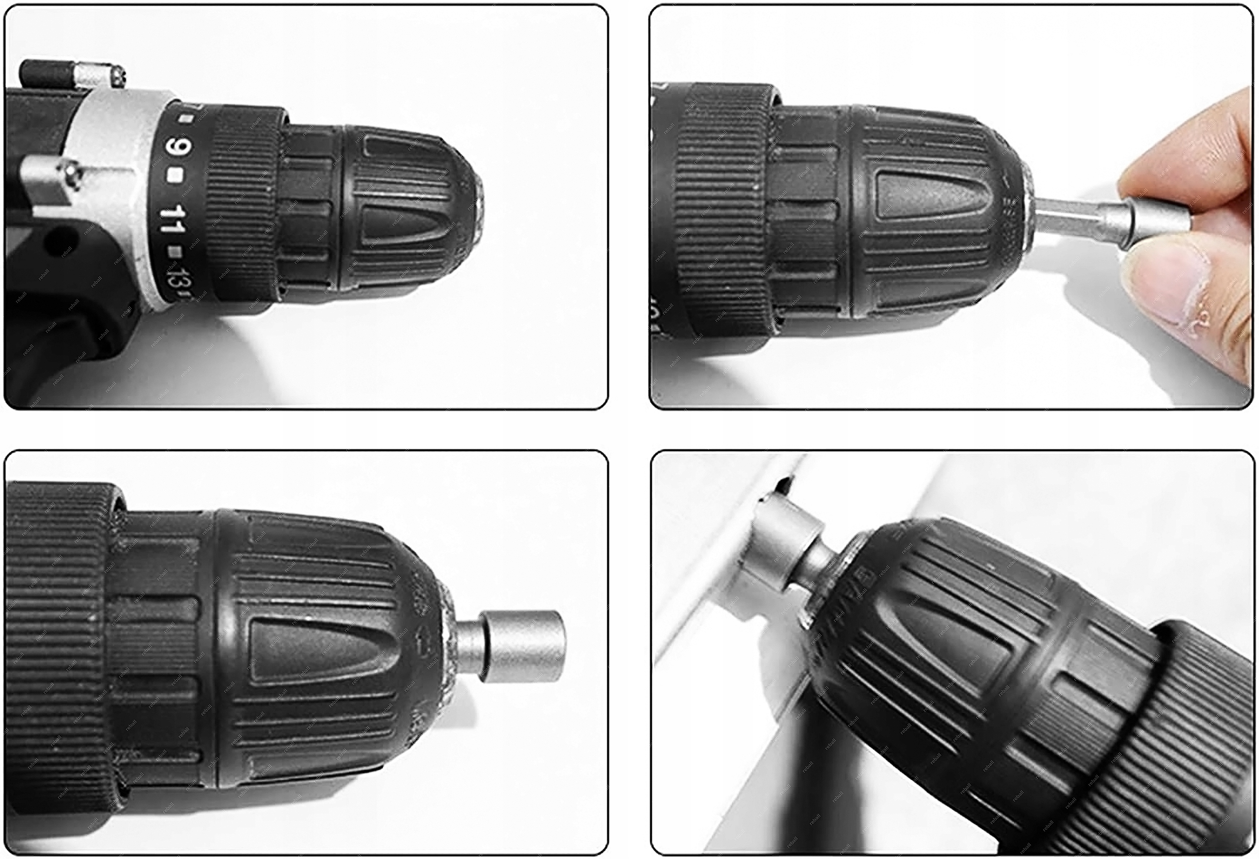 Користуватися розетками дуже просто. Просто помістіть гніздо в отвір інструменту, наприклад, дрилі, і затягніть механізм, щоб ключ міцно закріпився.