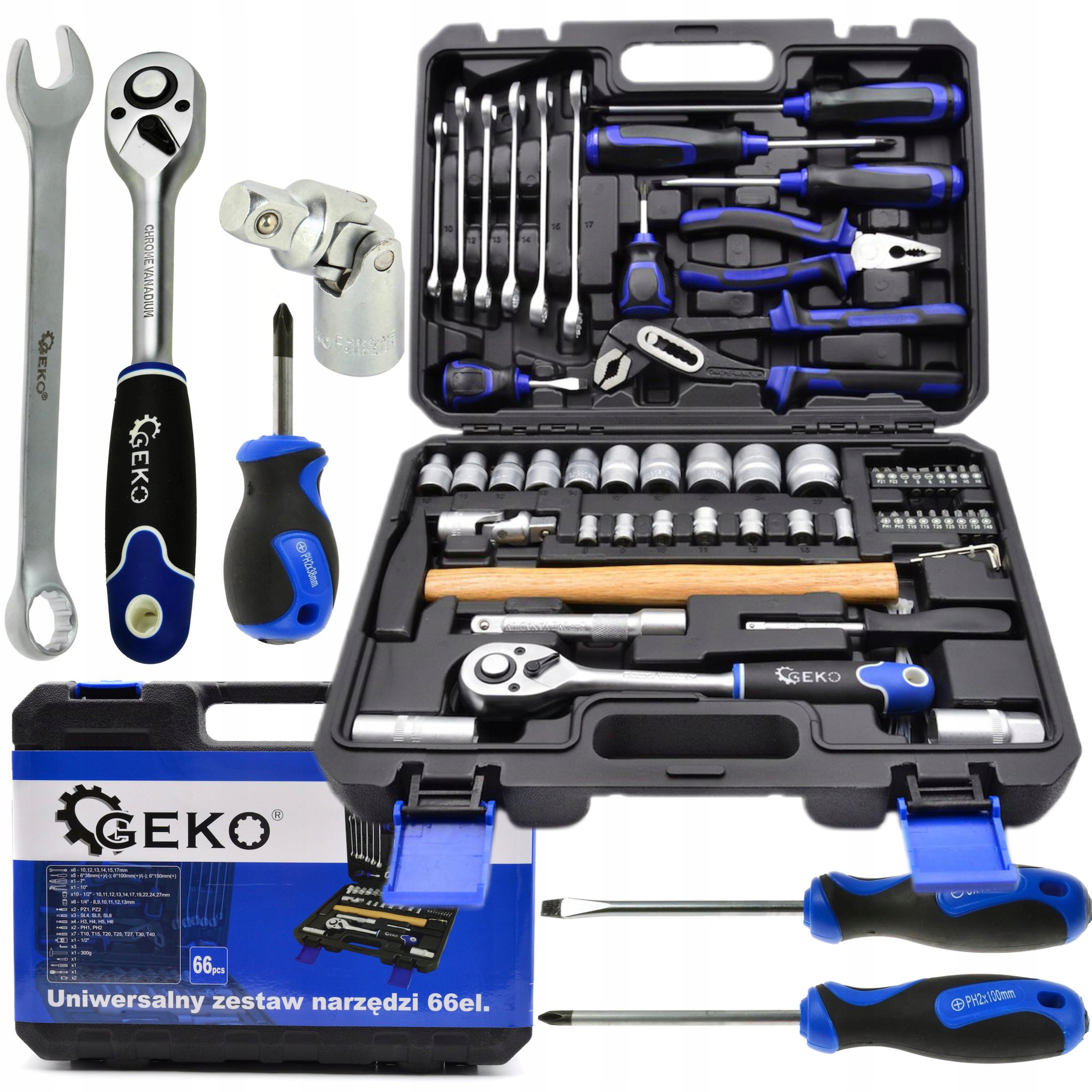 УНІВЕРСАЛЬНИЙ НАБІР ІНСТРУМЕНТІВ 66 ЕЛЕМЕНТІВ. БІТИ, КЛЮЧІ, ГНІЗДИ GEKO G10105