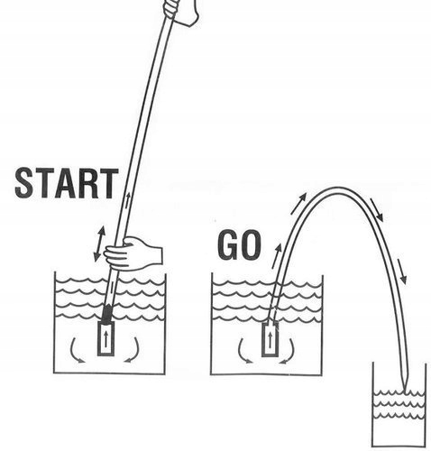 Універсальний насос для прокатки рідини, виготовлений з прозорої трубки з металевим наконечником, який містить зворотний клапан кулькового клапана. Переміщення наконечника в прокатній рідині кілька разів призводить до того, що вона потрапляє в трубку, а потім подальший потік відбувається на гравітаційній основі. Підходить для заливання палива, води та різних рідин.