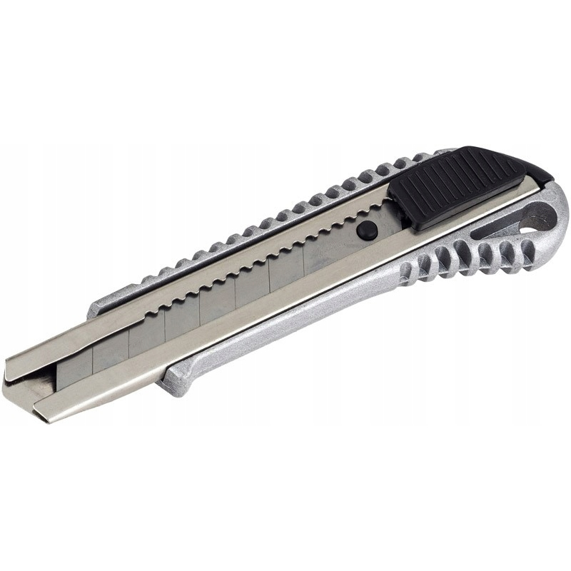 Нож з металевим направляючим - це практичний елемент домашньої меблів, майстерні або складу. Відмінно підходить для реконструкції, упаковка різних типів та інших робіт, що вимагають використання точних, різких скорочень. Дозволяє зламати використаний фрагмент леза.