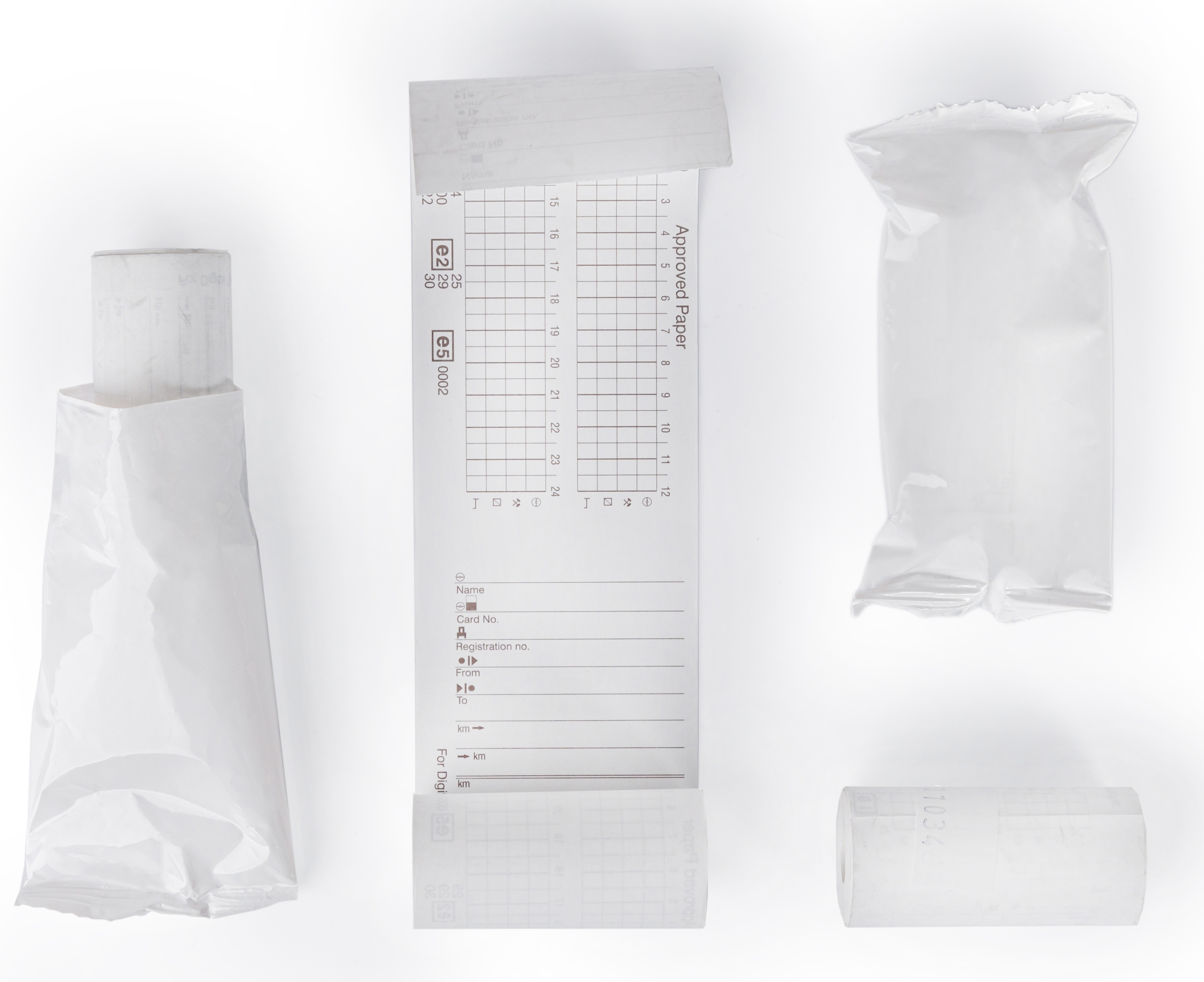 Кожний рулон має принт на звороті з полями для підпису, номера картки водія та ручного введення періодів активності
