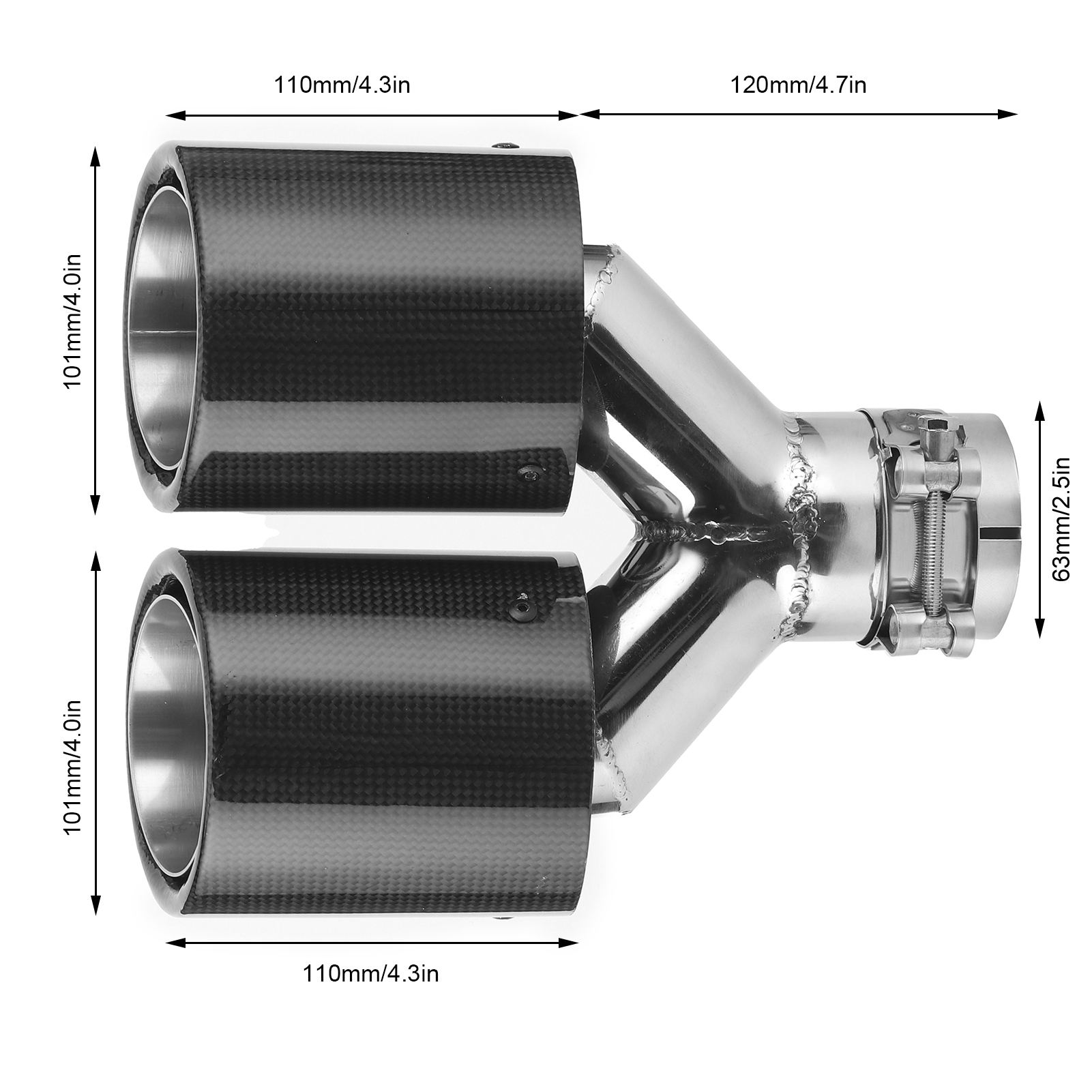 Функція: 1. Універсальний наконечник вихлопу Y, що підходить для 58-60 мм/2,3-2,4 в діаметрі труби автомобіля.