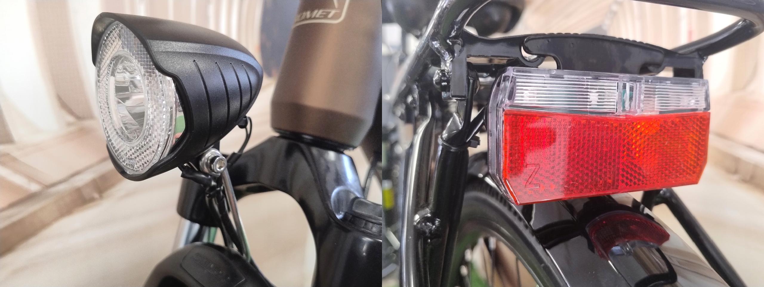 Велосипед оснащений інтегрованим освітленням, що працює від динамо в маточини переднього колеса (Shimano Nexus DH-3D37) . Завдяки цьому, вогні працюють незалежно від рівня заряду акумулятора, що забезпечує постійну видимість та безпеку під час руху - як протягом дня, так і після темряви. Це рішення є практичним, бездоганним та екологічним.