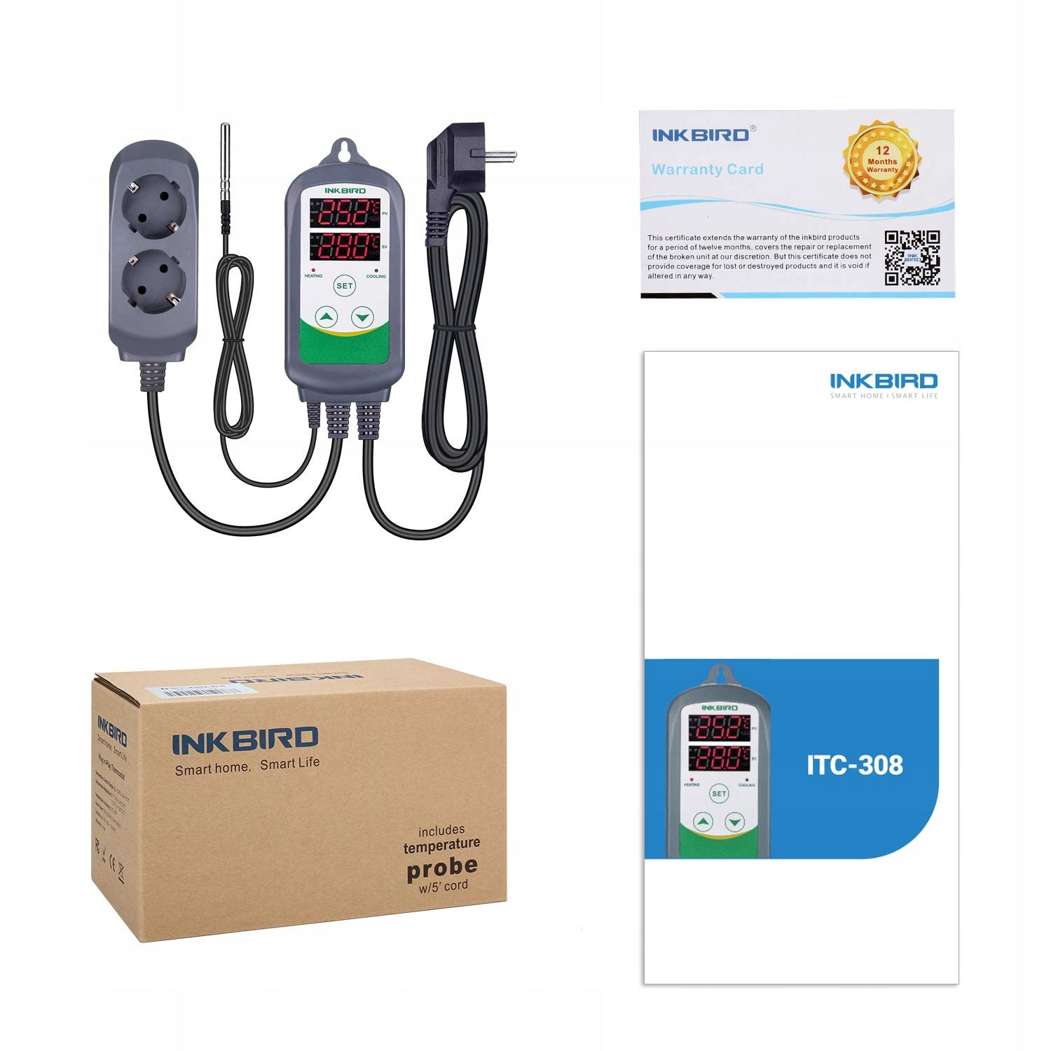 Цифровий контролер температури Inkbird ITC-308 з датчиком, перемикачем температури нагріву та охолодження, 230 В термостата